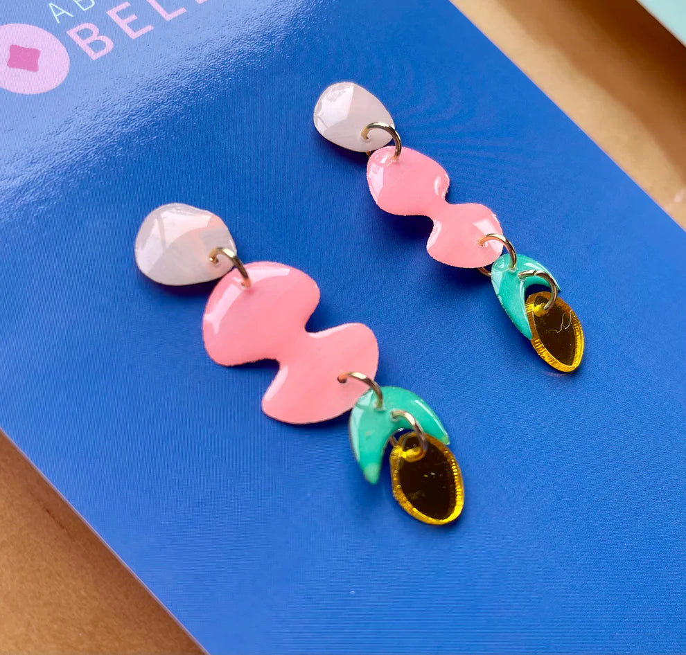 Soft curves and radiant tones come together in this stunning pair of Zelda earrings. Lovingly handmade, these lightweight statement earrings feature a cascade of organic shapes.