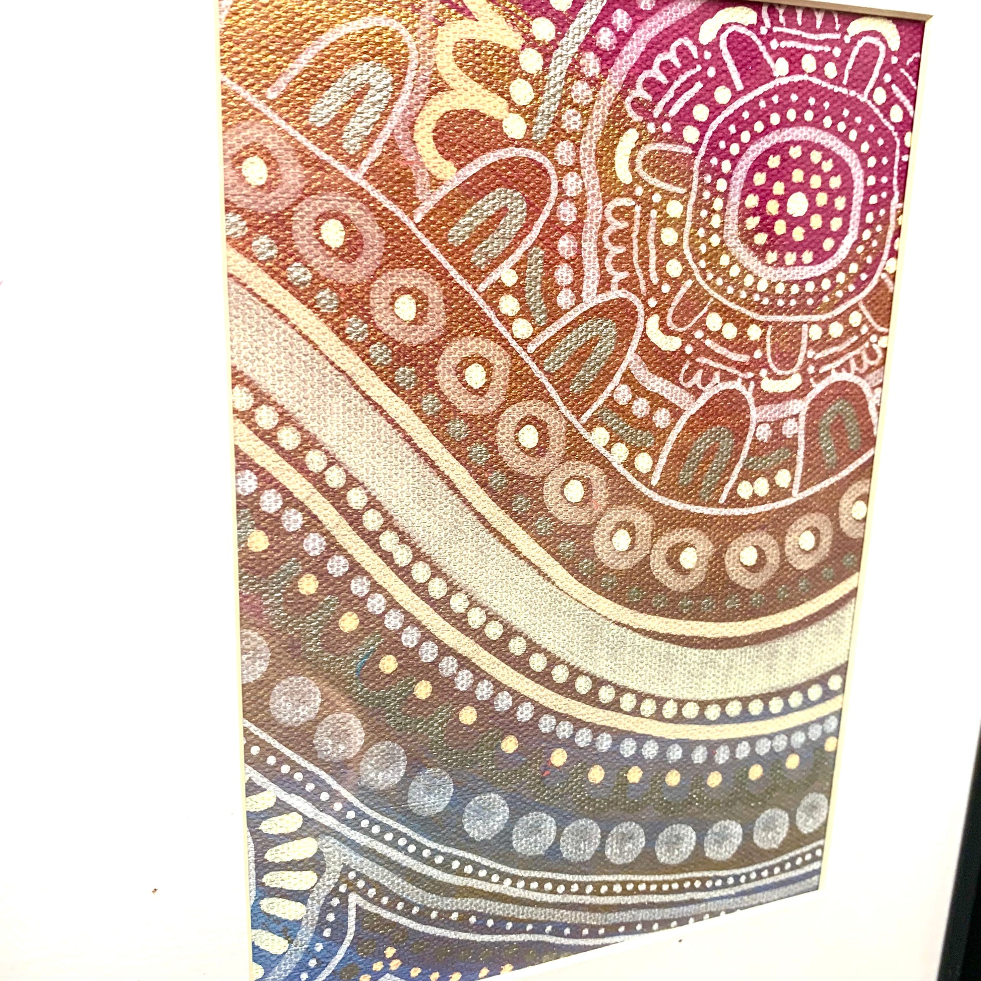 A striking, one-of-a-kind artwork by Art by Gaylee, framed in a sleek black frame and ready to hang or stand. Each untitled piece measures 22.5 × 27.5 × 1.5 cm, making it a perfect size to display on its own or as part of a collection. Contemporary, vibrant, and full of character, these original works bring a touch of culture and colour to any space.