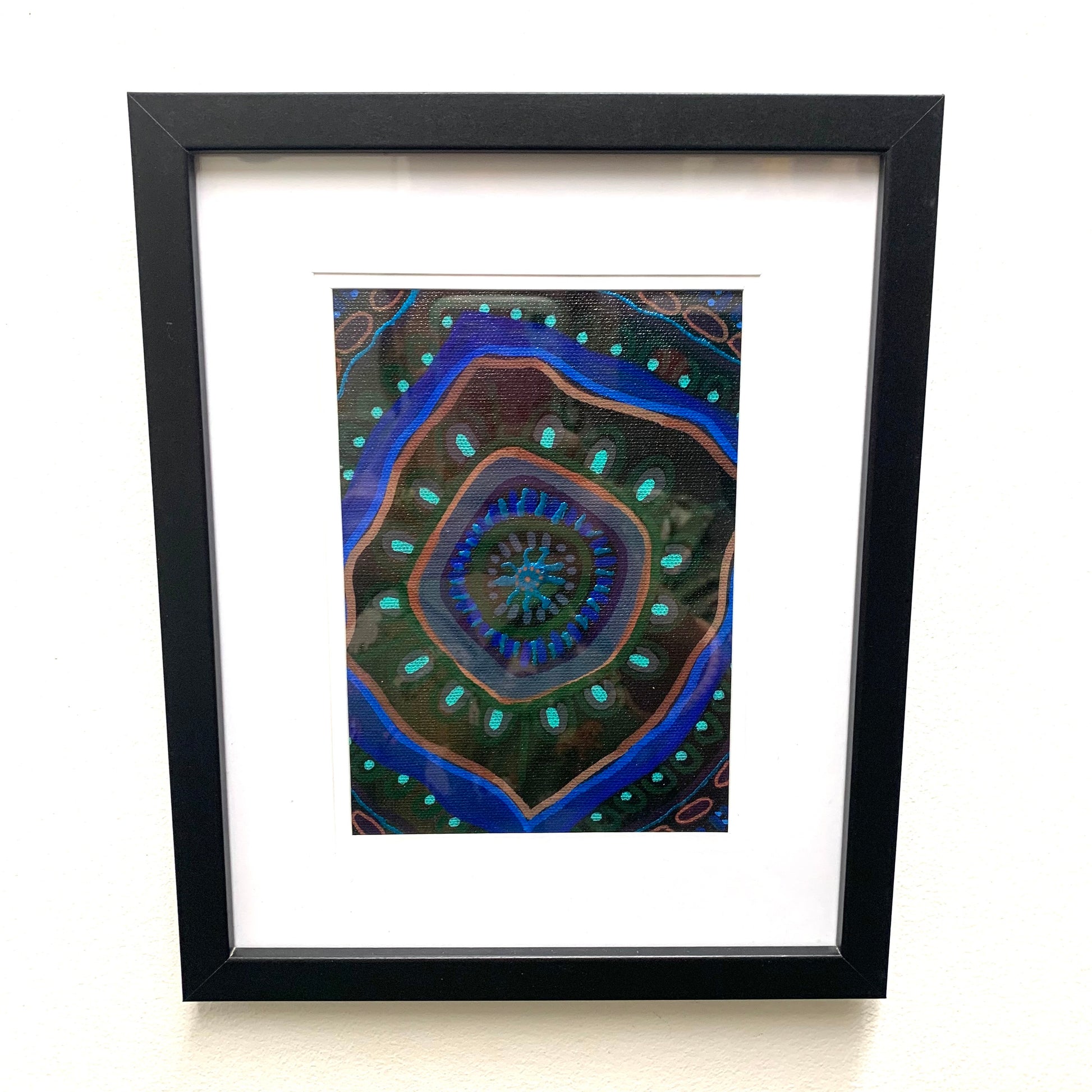 A striking, one-of-a-kind artwork by Art by Gaylee, framed in a sleek black frame and ready to hang or stand. Each untitled piece measures 22.5 × 27.5 × 1.5 cm, making it a perfect size to display on its own or as part of a collection. Contemporary, vibrant, and full of character, these original works bring a touch of culture and colour to any space.