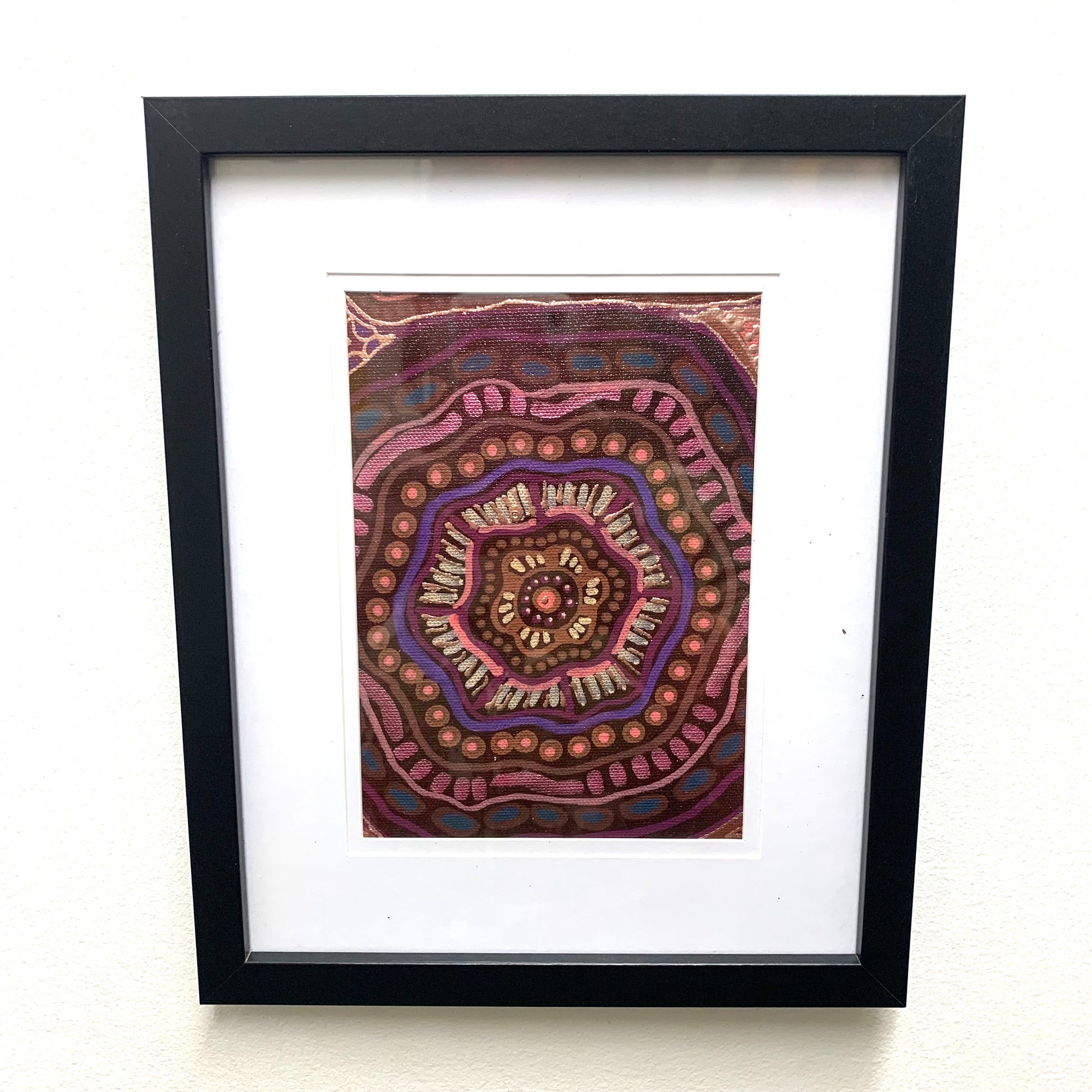 A striking, one-of-a-kind artwork by Art by Gaylee, framed in a sleek black frame and ready to hang or stand. Each untitled piece measures 22.5 × 27.5 × 1.5 cm, making it a perfect size to display on its own or as part of a collection. Contemporary, vibrant, and full of character, these original works bring a touch of culture and colour to any space.
