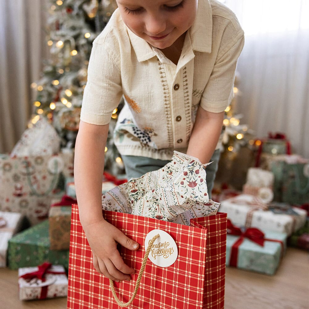 BESPOKE LETTERPRESS - "Red Check" Large Gift Bag