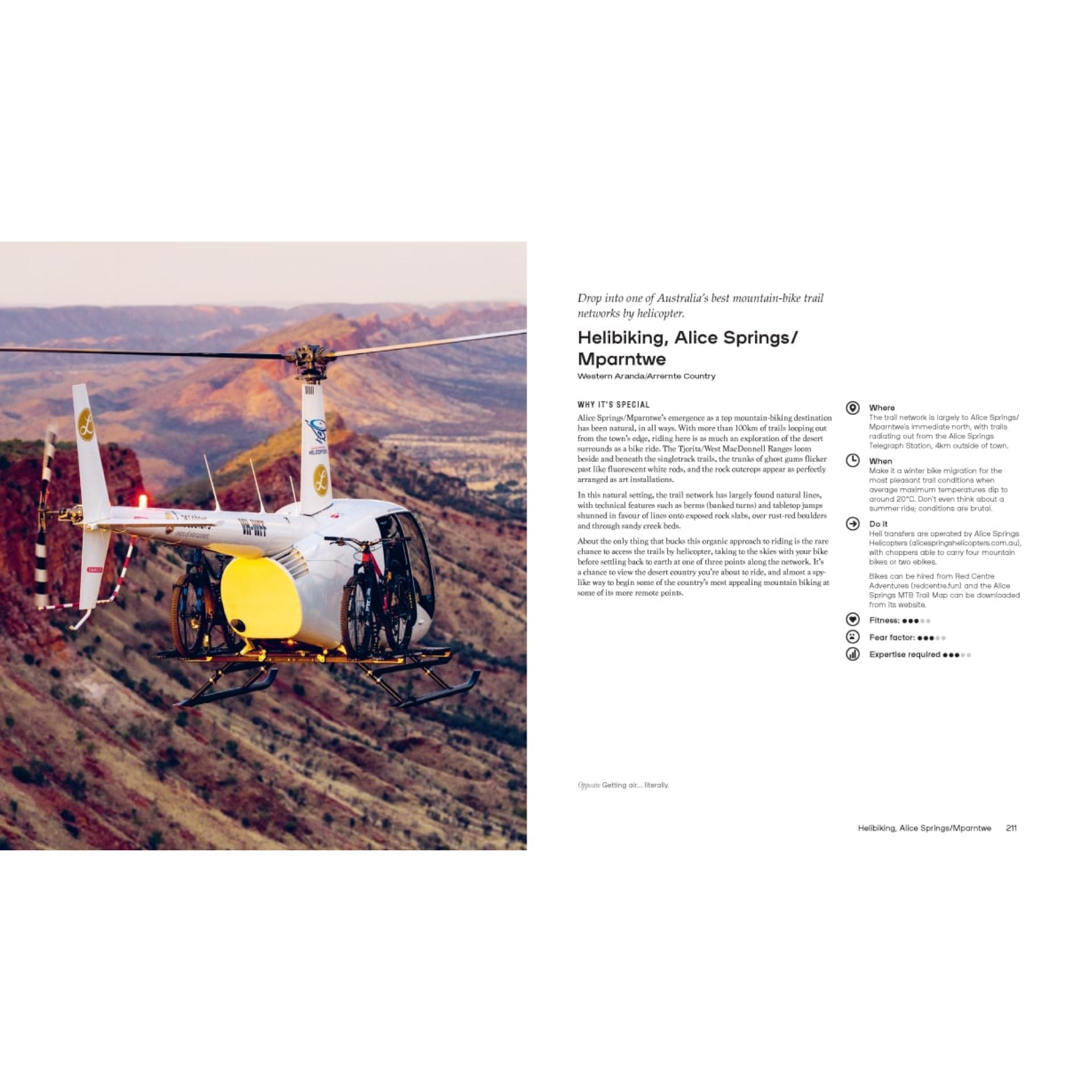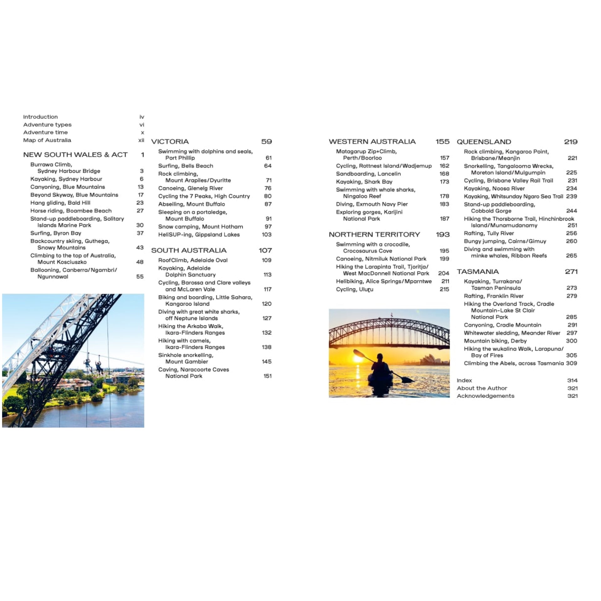 All of the adventures featured in this book are guaranteed to get your blood pumping, but don't require years of practice. You'll discover memorable wildlife interactions like camel trekking in the Flinders Ranges and swimming with the whale sharks at Ningaloo Reef, invigorating water-based fun like kayaking in Sydney Harbour and canoeing through Nitmiluk Gorge, sandboarding at Lancelin, heli-mountain biking in Alice Springs, and snow camping at Mount Hotham.