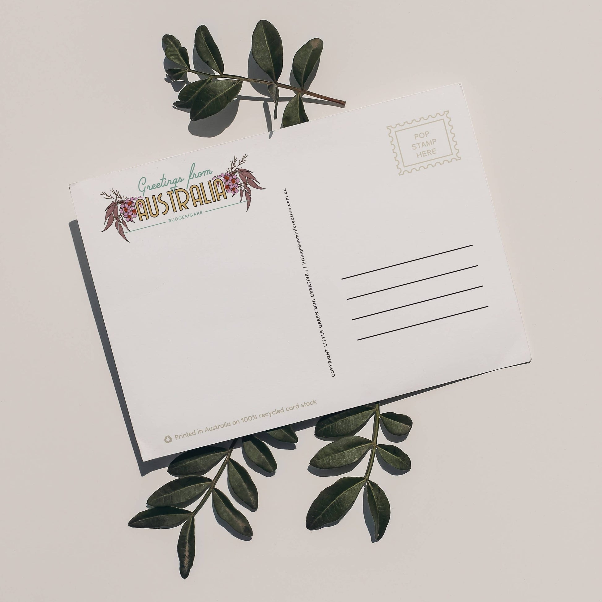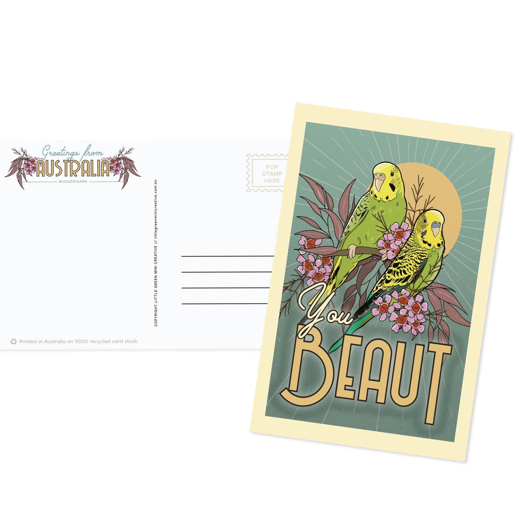 Green Mini Creative - Postcard- Budgie- "You Beaut"