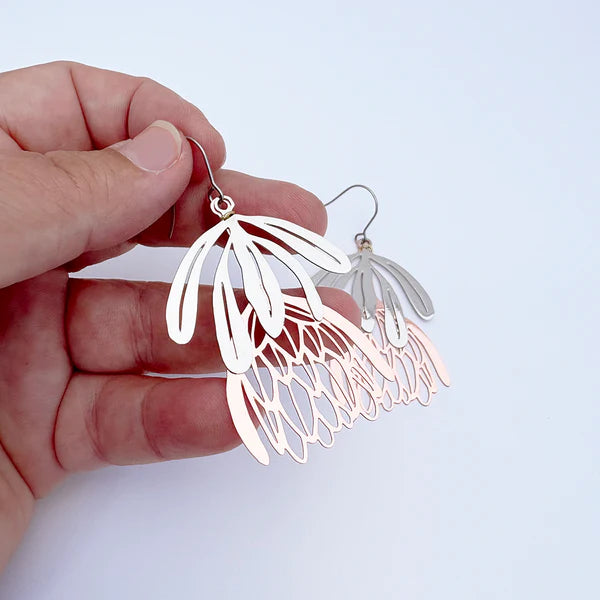 Protea flower dangle earrings in Silver/Rose Gold. Super lightweight.
