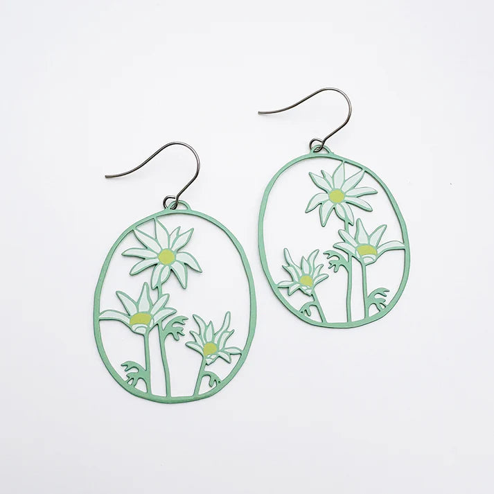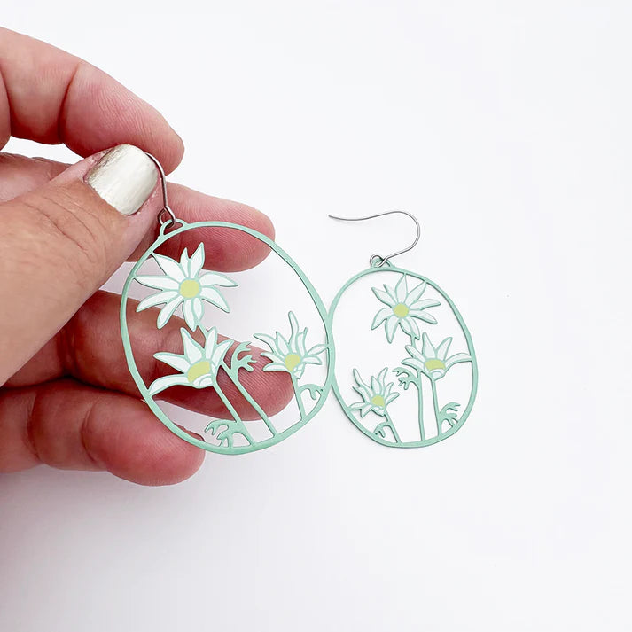 Midi Flannel Flower earrings in Green/White/Yellow. Super lightweight Midi size earring.