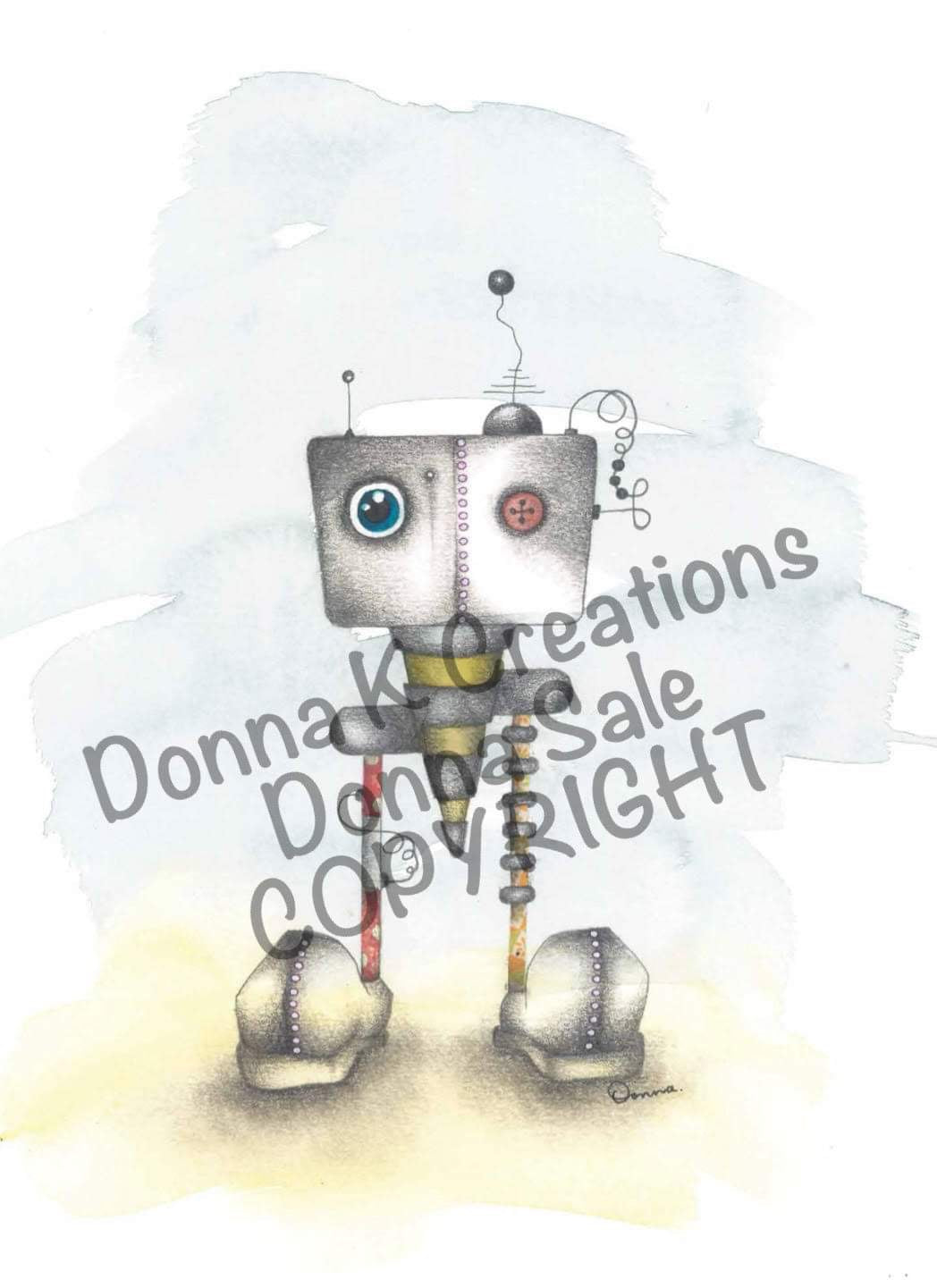 DONNA K CREATIONS- A4 ART PRINTS- Beep Bop Robot