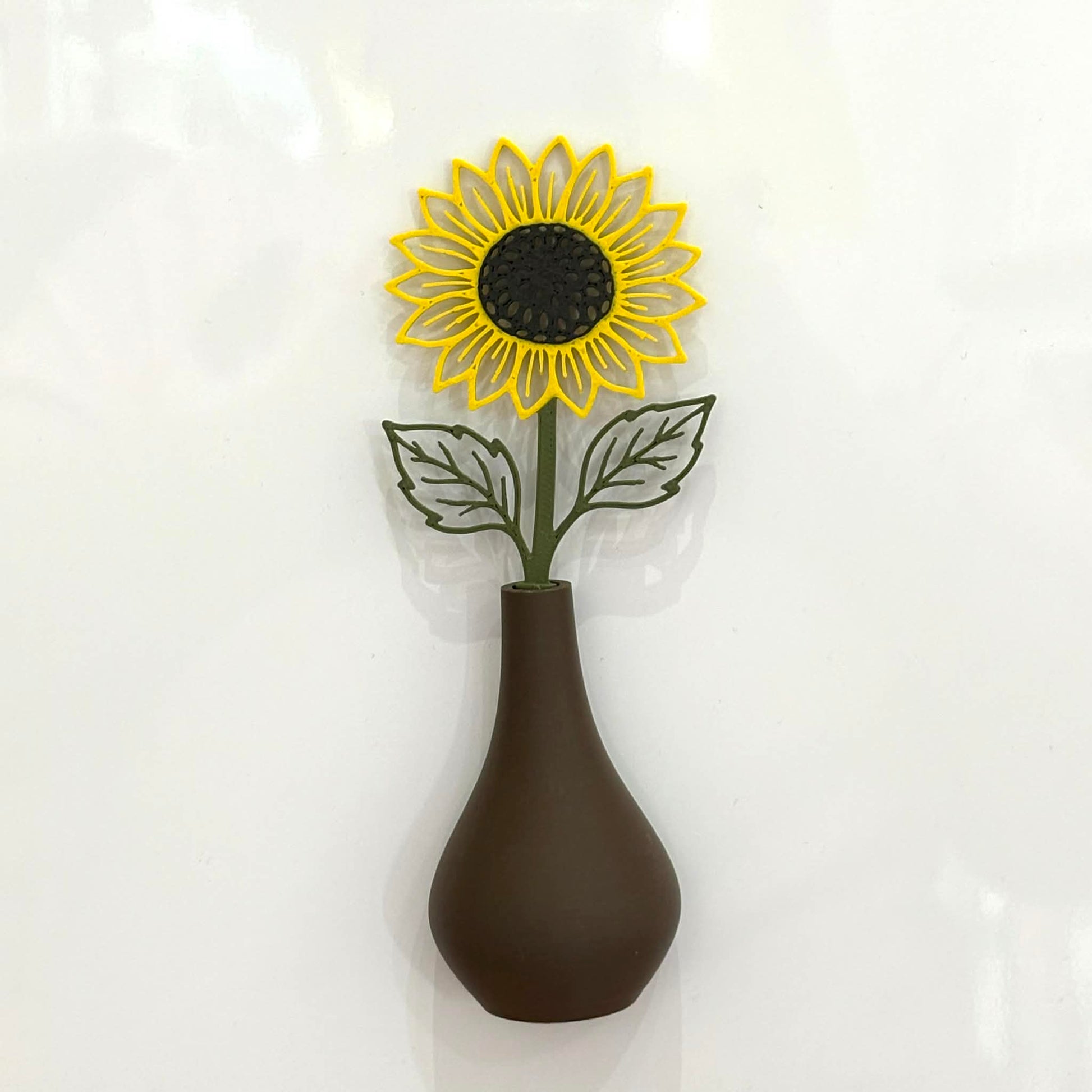 Bring instant sunshine to your space! This bright and cheerful sunflower stands tall in a 3D printed magnetic vase—perfect for the fridge, filing cabinet or any metal surface.