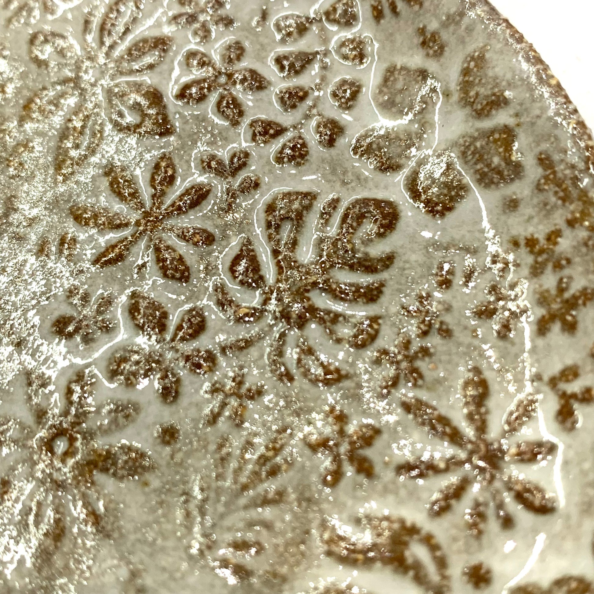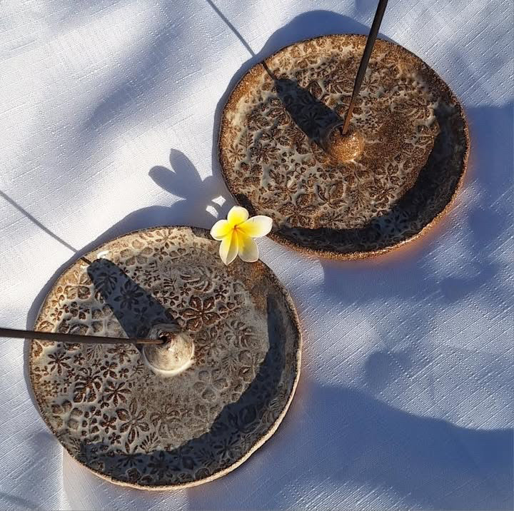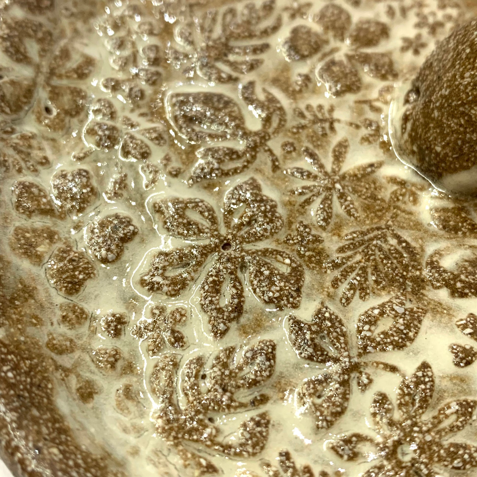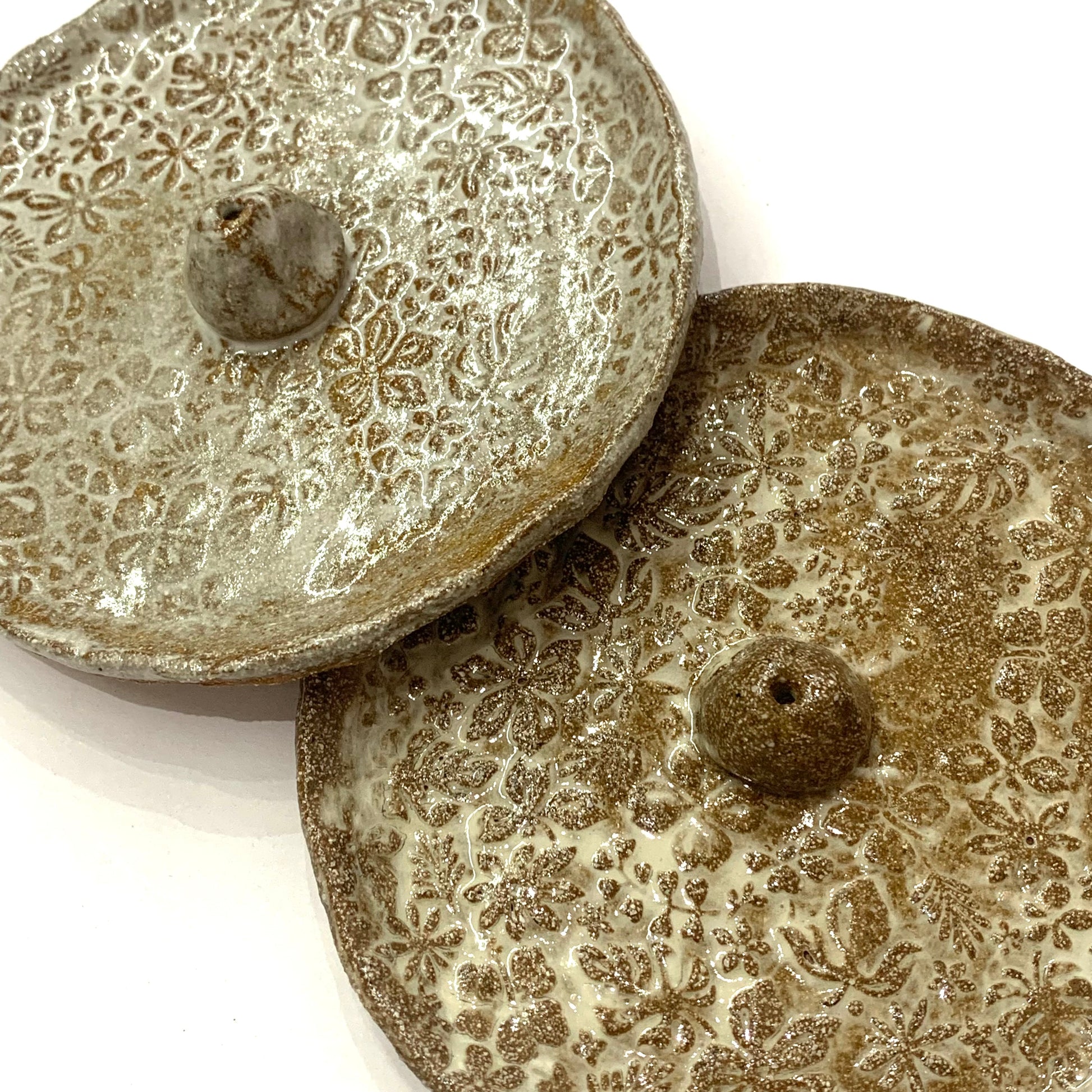 EARTH BY HAND- Hand Built Clay Incense Holders - Botanical Embossed White