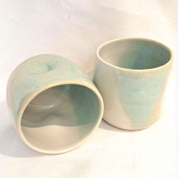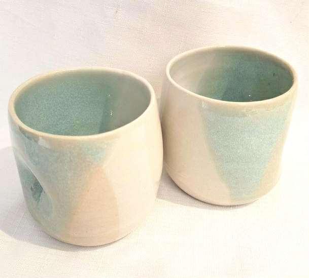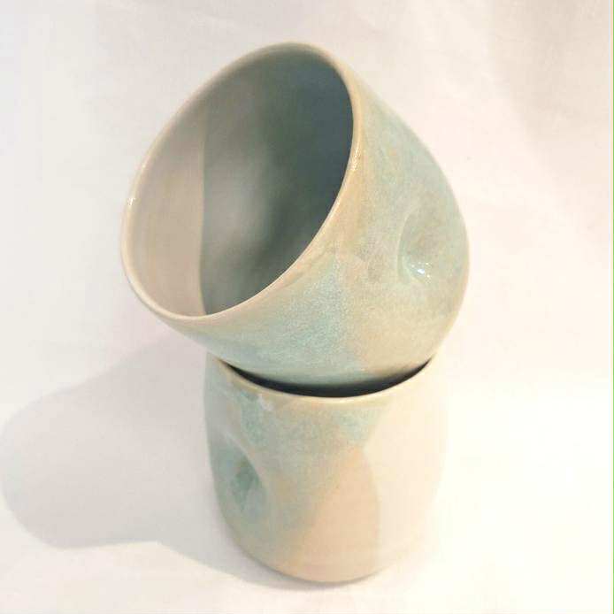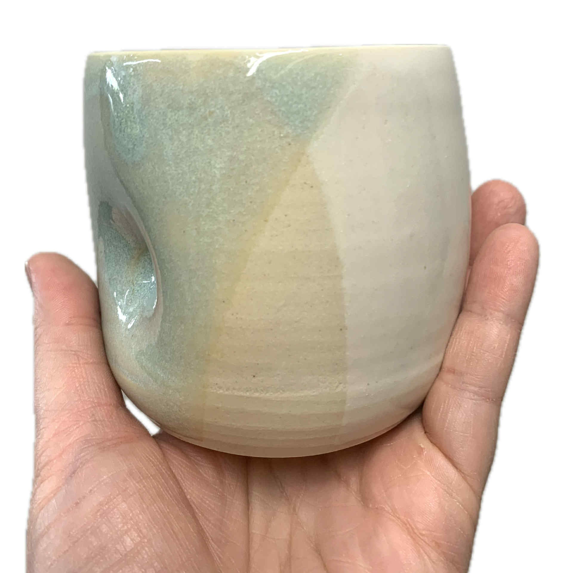 The perfect sized Tumbler or cup, in the smooth clay, with indentations to fit your fingers, hence the name hug mug, it's like your hand is hugging the cup and it's made for your hand! These are the loveliest soft seafoam green/blue tones, so special!