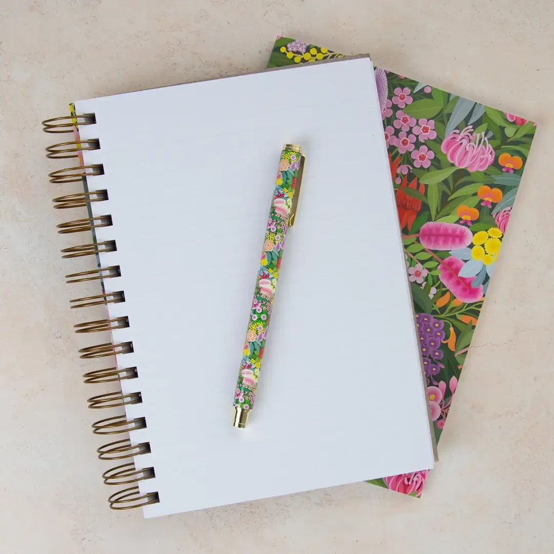 Be inspired to pen your thoughts, dreams and stories inside this chunky spiral bound journal. It contains 200 lined pages within a super sturdy hard cover, which features inspiring native botanical artwork by Australian artist Claire Ishino.
