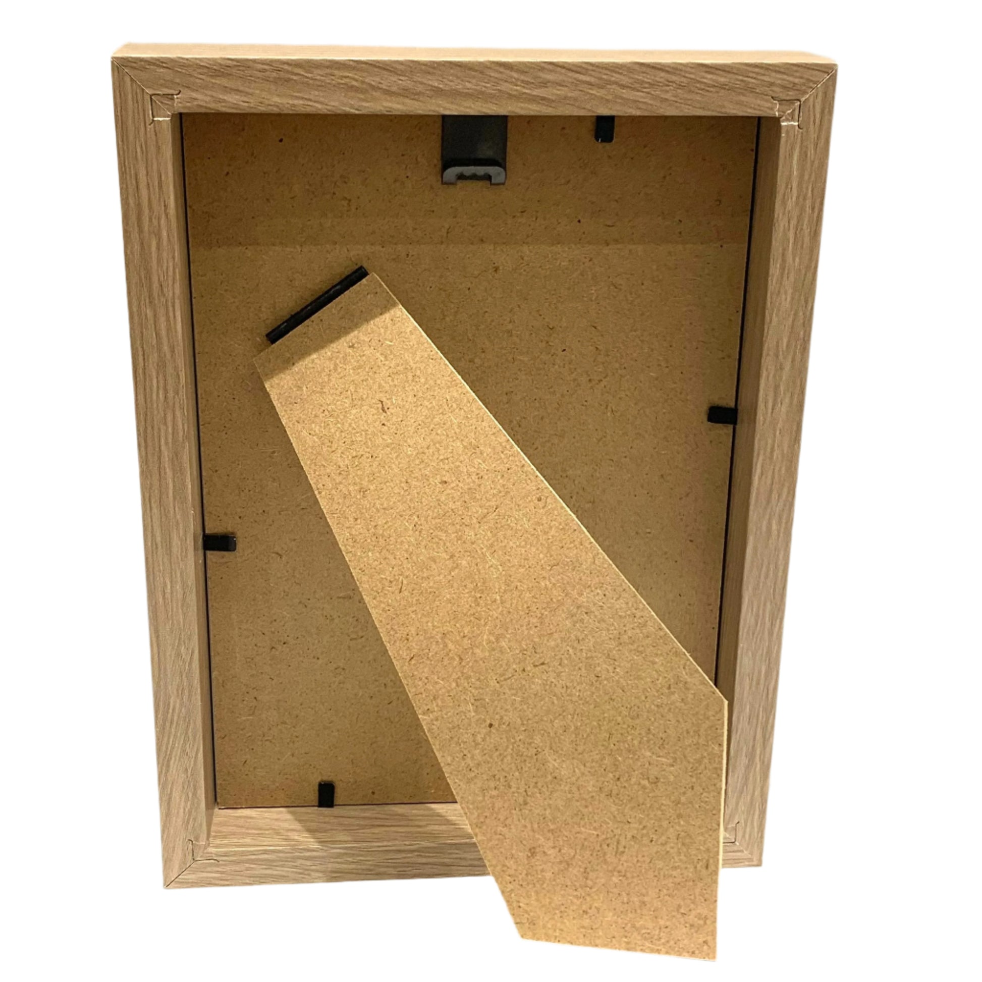 BEECH COLOURED FAUX TIMBER FRAME, WHICH CAN STAND OR BE HUNG.