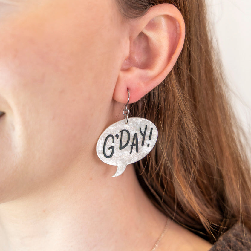 ERSTWILDER - G'DAY Speech Bubbles - White- Essential Earrings - AUSTRALIANA COLLECTION