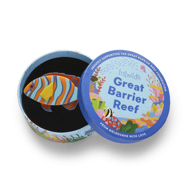Celebrate the wonders of the Great Barrier Reef with the limited-run Harlequin Tuskfish Brooch, a dazzling nod to the reef’s extraordinary biodiversity. Ideal for ocean lovers and collectors alike, this brooch has been hand-assembled from layered resin with etched, painted, and printed details. Designed to reflect the beauty of the ocean’s most fascinating creatures, it’s a purchase you can feel great about too, with $5 AUD from the sale of each piece being donated to the Great Barrier Reef Foundation to further their effort in protecting, preserving and restoring the reef.