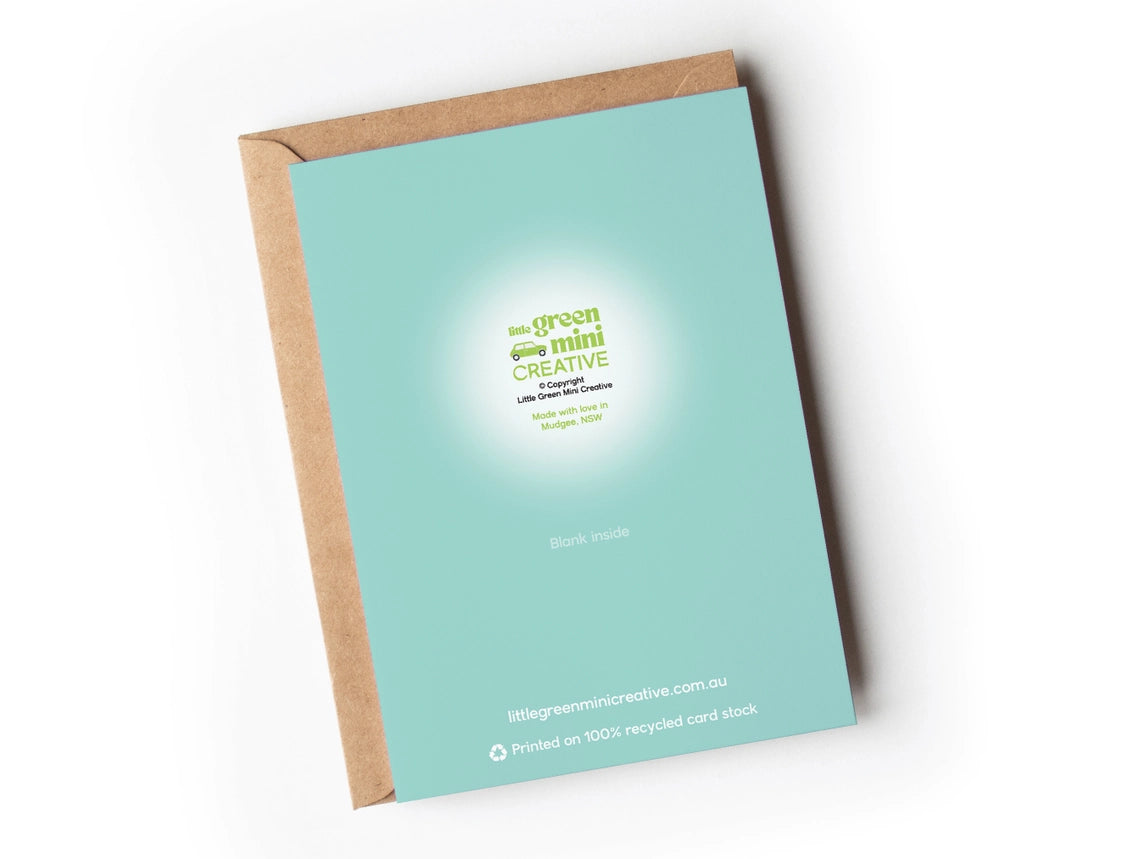 Based in Mudgee, Regional NSW - Little Green Mini Creative's greeting cards are illustrated and designed in a small home studio and printed within Australia on 100% post consumer recycled card stock. Unlike other greeting card companies, most of our cards are designed to take on a second life as art, minimising waste and bringing colour and fun into your home, office or space.