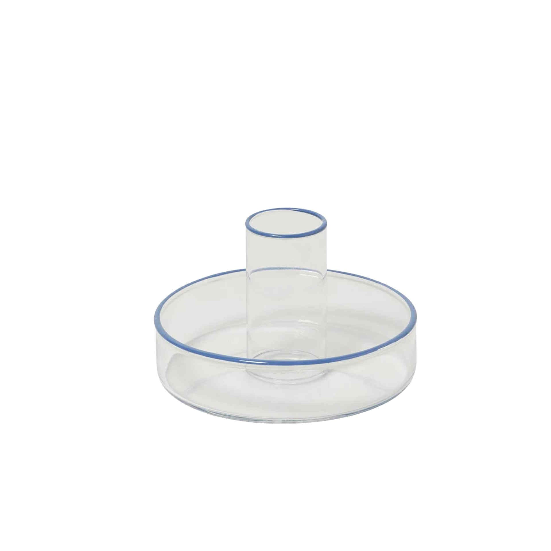 Cool, calm and collected — this blue-trimmed glass candle holder brings a serene, coastal vibe to any setting. A dreamy companion for moody evenings or minimalist tablescapes.