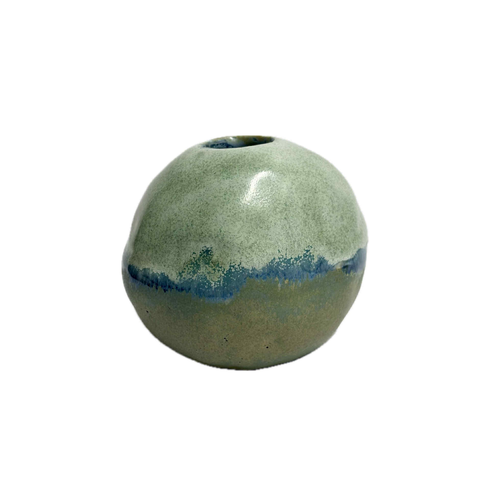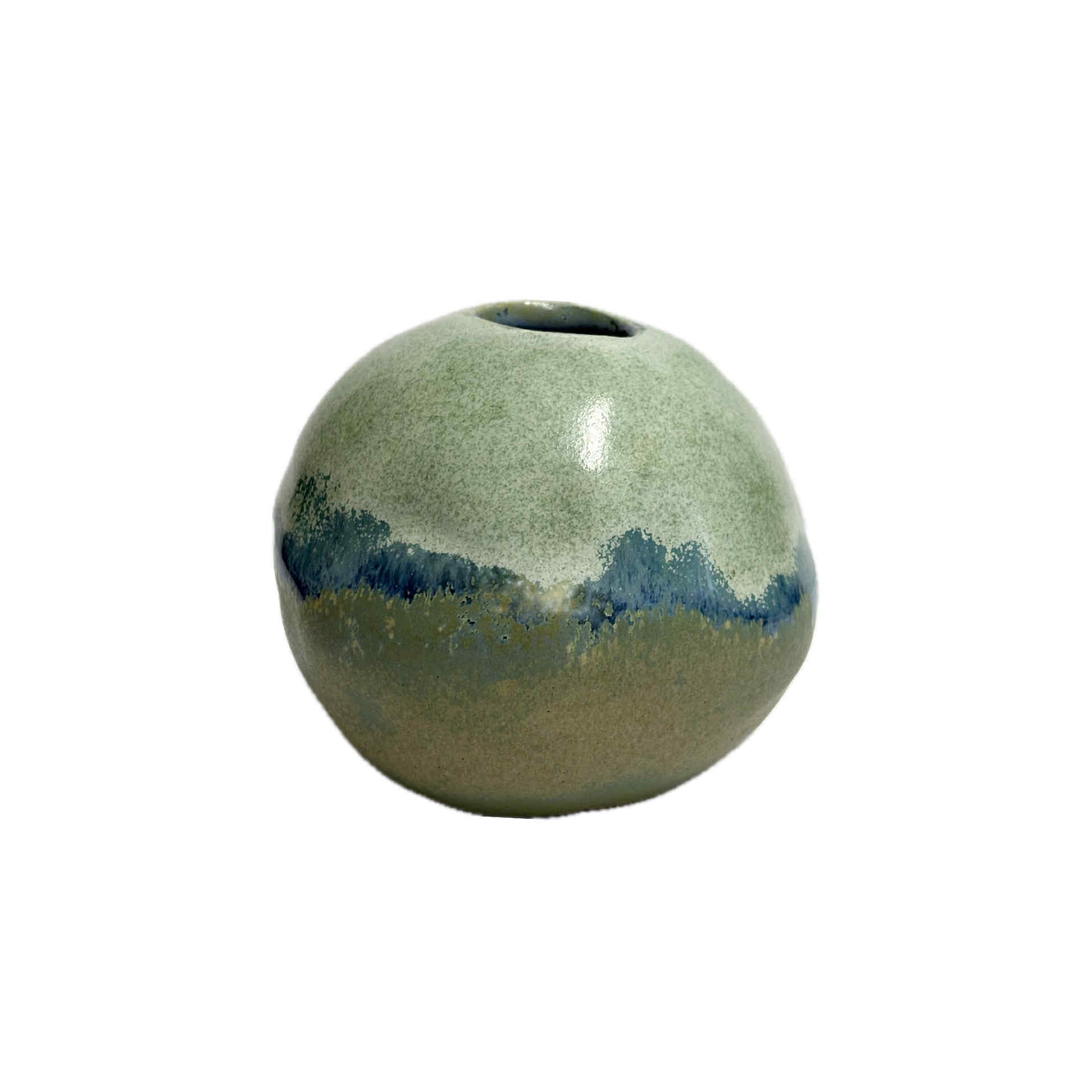 INSPIRED BY NATURE - Blue Mountains and Eucalypt Round Vase – Soft Green with Indigo Fade