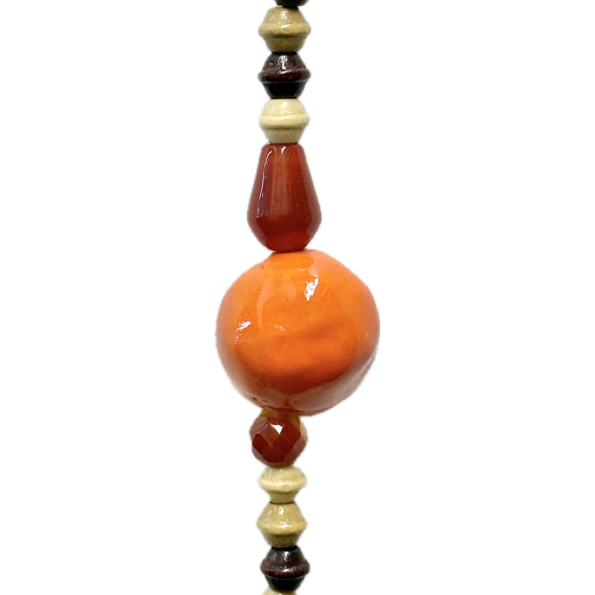 Crafted with a warm-toned Morton Bay Ash wood slice, this piece features an earthy palette of orange tear-drop beads and recycled ceramic accents. Light-catching and rustic, it brings an organic rhythm to any space—perfect for your verandah, breezeway, or sunroom.