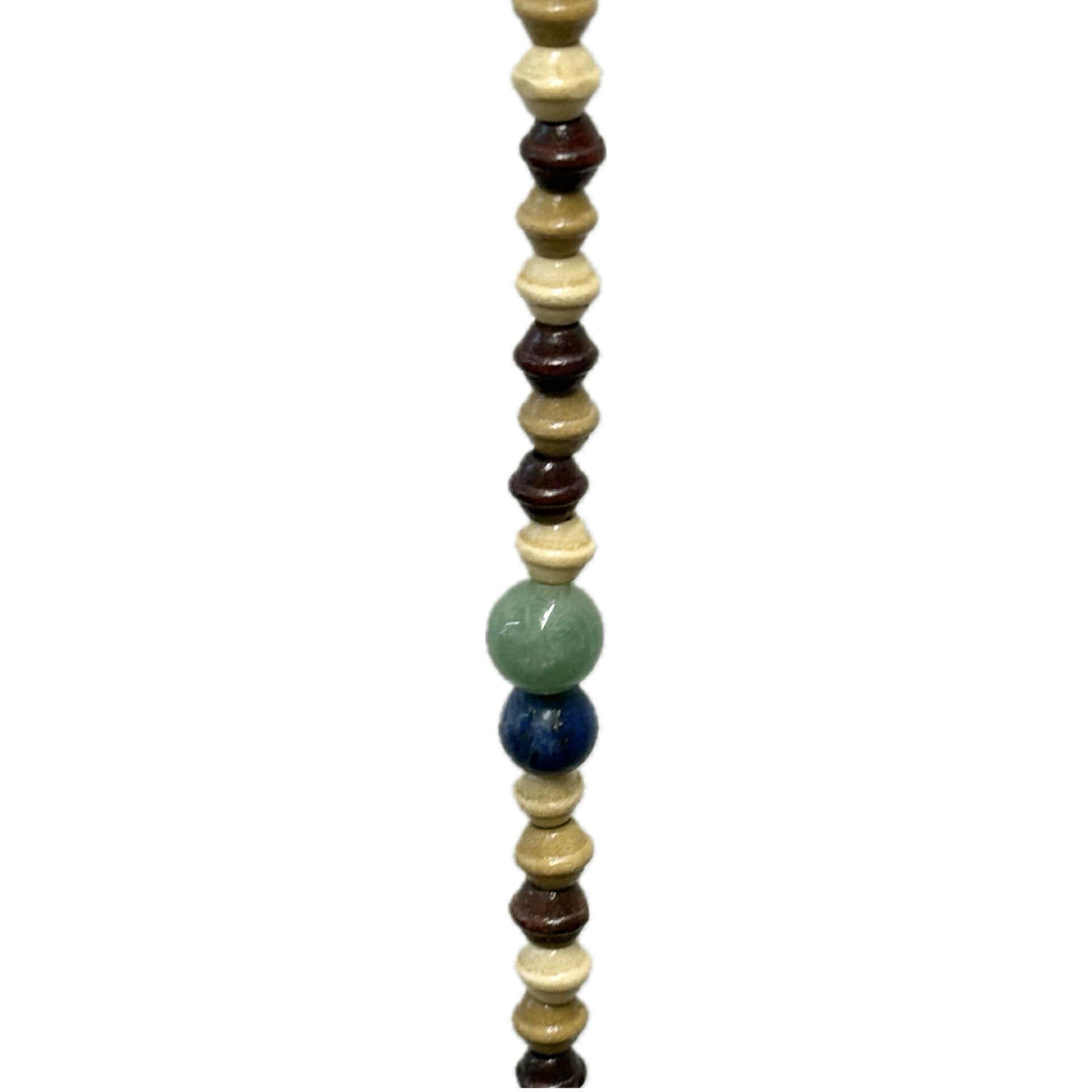 Sustainably created with Queensland Maple and accented by blue ceramic, glass, and repurposed beads, this piece brings a touch of cool-toned calm. Its natural wood grain and handcrafted detailing make it an eye-catching addition to indoor or sheltered outdoor spaces.