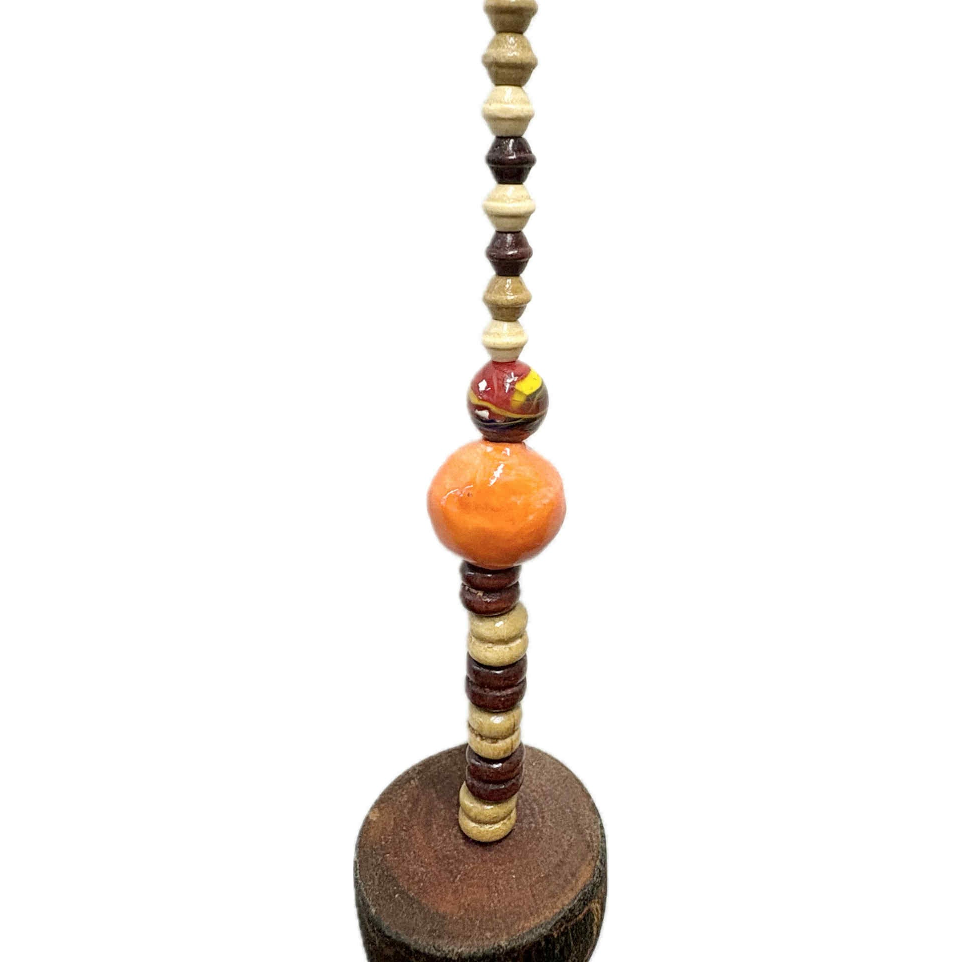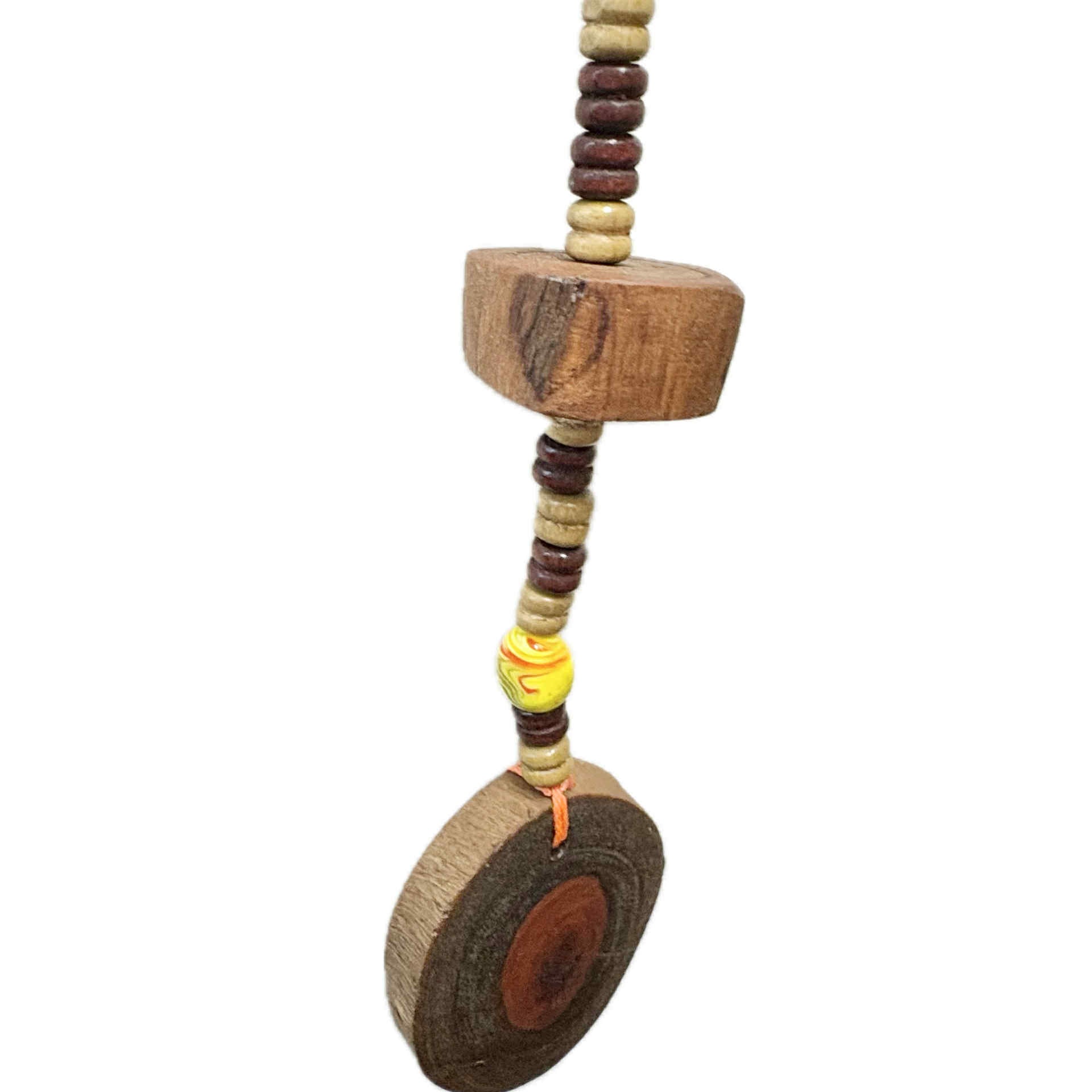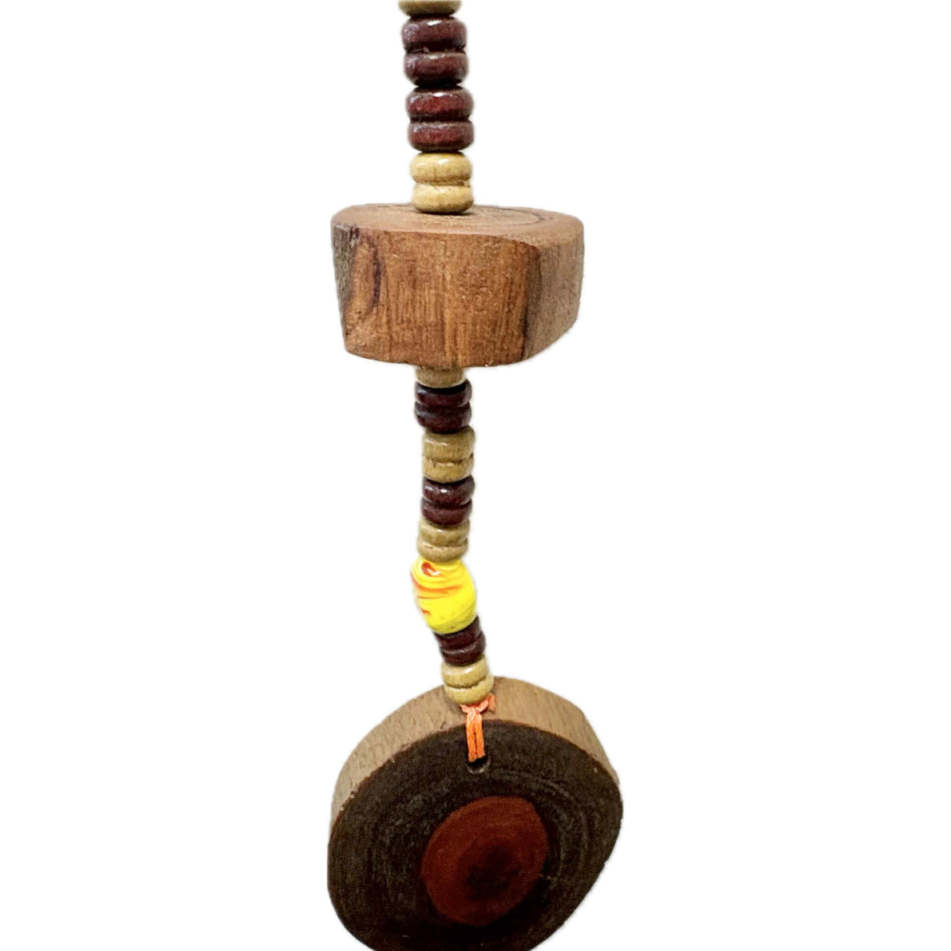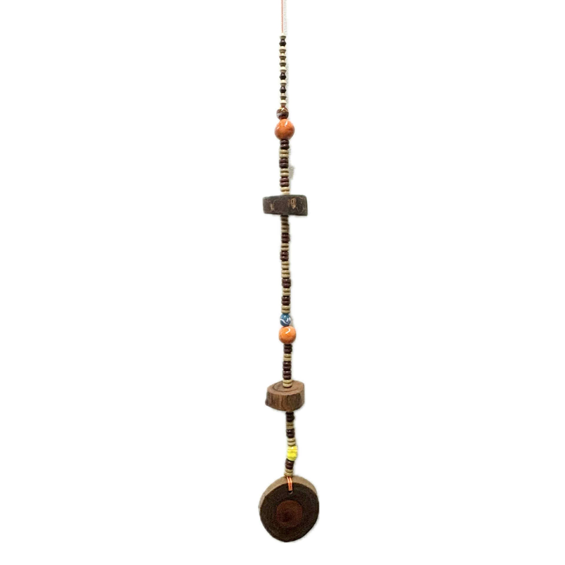 A showstopper of textures and tones, this hanging piece is made from three North Queensland timbers—Morton Bay Ash, QLD Maple, and Pink Cedar. Featuring ceramic beads handmade by a Yungaburra glass artist, it’s a celebration of local materials and maker magic.
