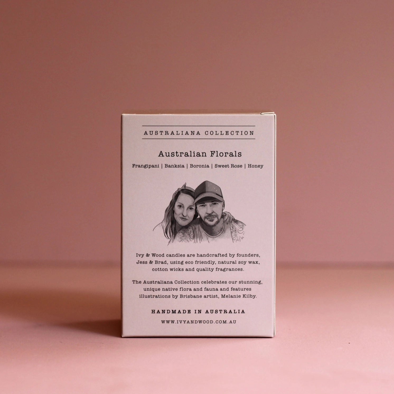 Founded in 2016, Ivy & Wood is run by partners, Jess & Brad, who make all products by hand in their north Brisbane workshop. Jess started out making a small batch of candles in the kitchen and gifted them to friends and family. After receiving a great response, she hatched the idea of starting a business.