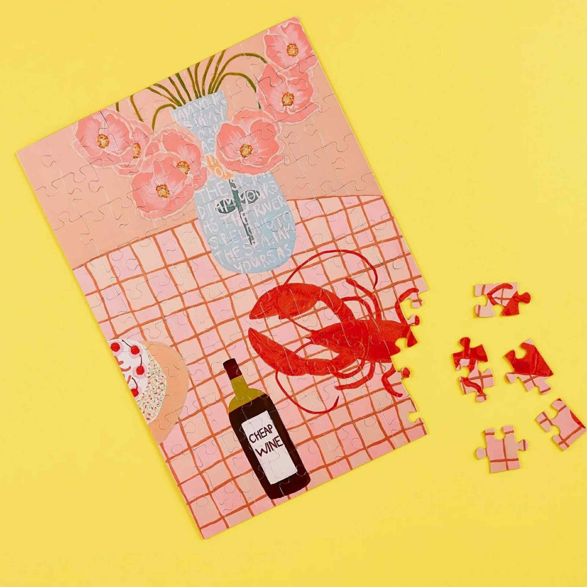 Keep this super cool, 100 piece magnetic jigsaw puzzle on your fridge or anywhere that holds magnets. Chip away at this unique magnetic jigsaw puzzle every time you need a snack (and by snacks we mean wine).