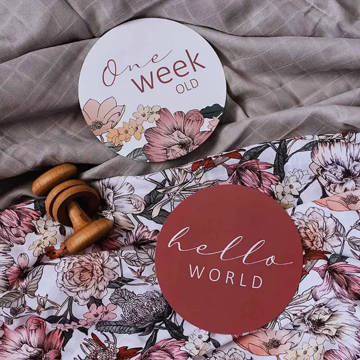 Capture your baby's milestone moments and document their 'firsts' in photographs to treasure for a lifetime with our Australiana & Rust Milestone Cards. This 2 in 1 pack contains 25 Reversible milestone cards that coordinate with a range of our products.