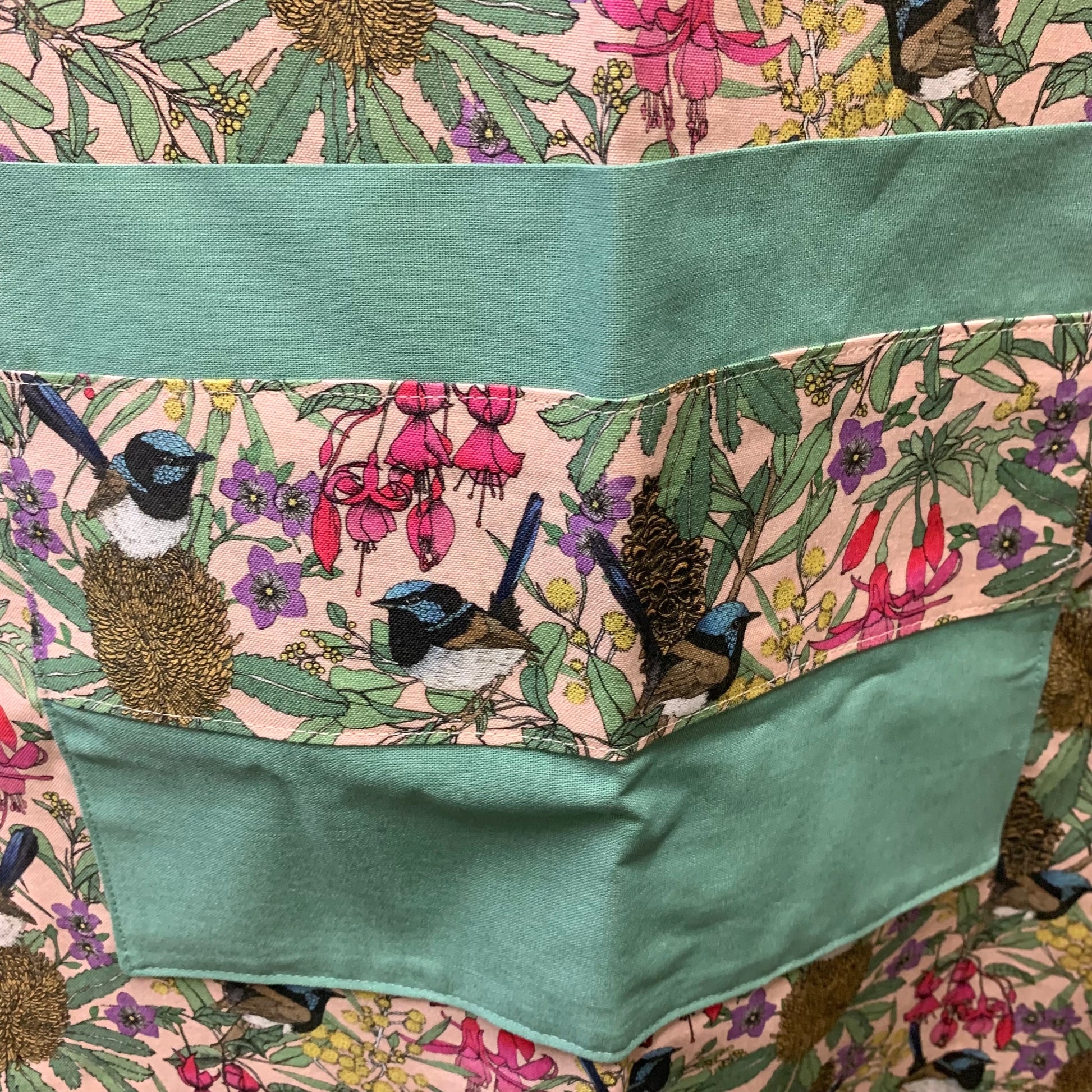 MUMMA WHOOPEE- "Fairy Wrens & Fuschia" Scenic Route Fabric- APRON