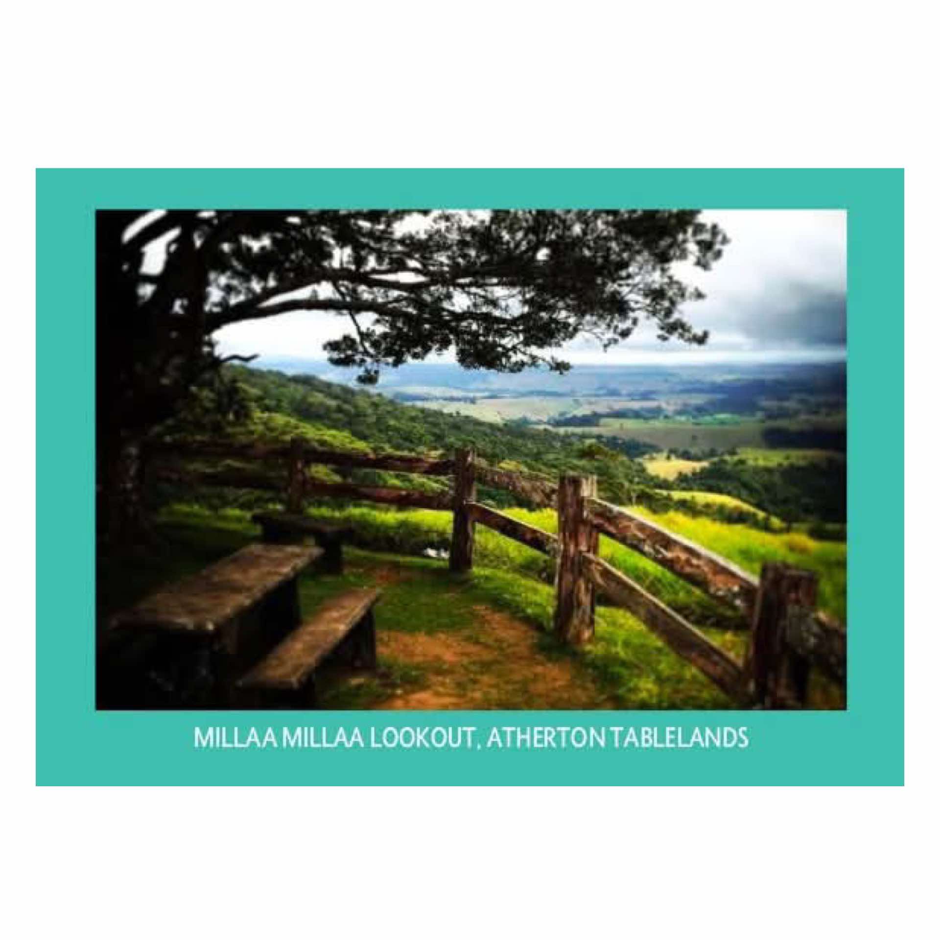 DESCRIPTION-Also known as Gentle Annie Lookout, one of the most superb vistas in the region unfolds from the Millaa Millaa Lookout, East Evelyn Road, Millaa Millaa on the Atherton Tablelands. This is the heart of Dairy country, in what is essentially the hinterland of Cairns, a green and rural lush landscape, in stark contrast to the hot & tropical coast down the hill!