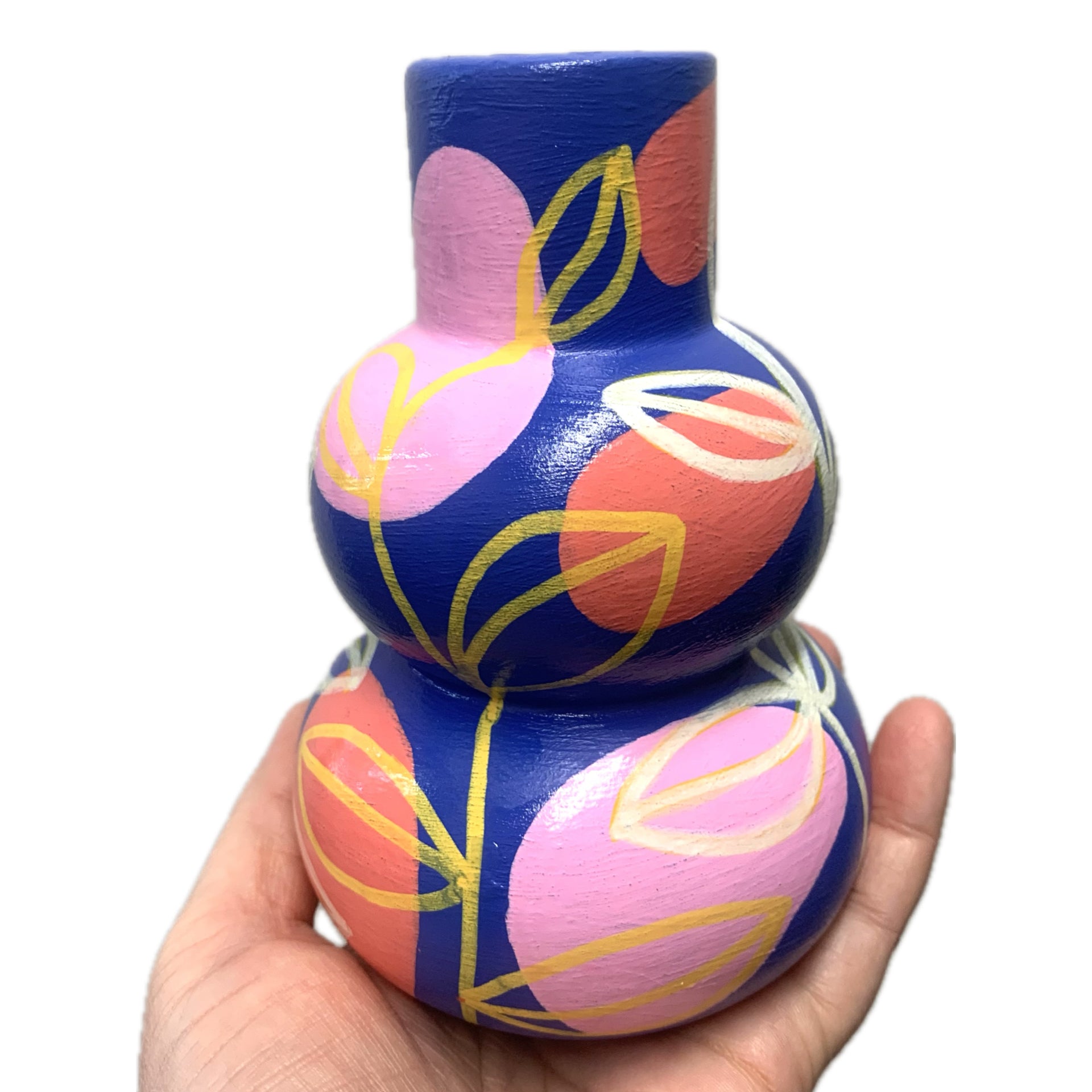 THIS BIRD HAS FLOWN - Small Vine Vase- Blue, Pink, Peach & Yellow- Decorative Only