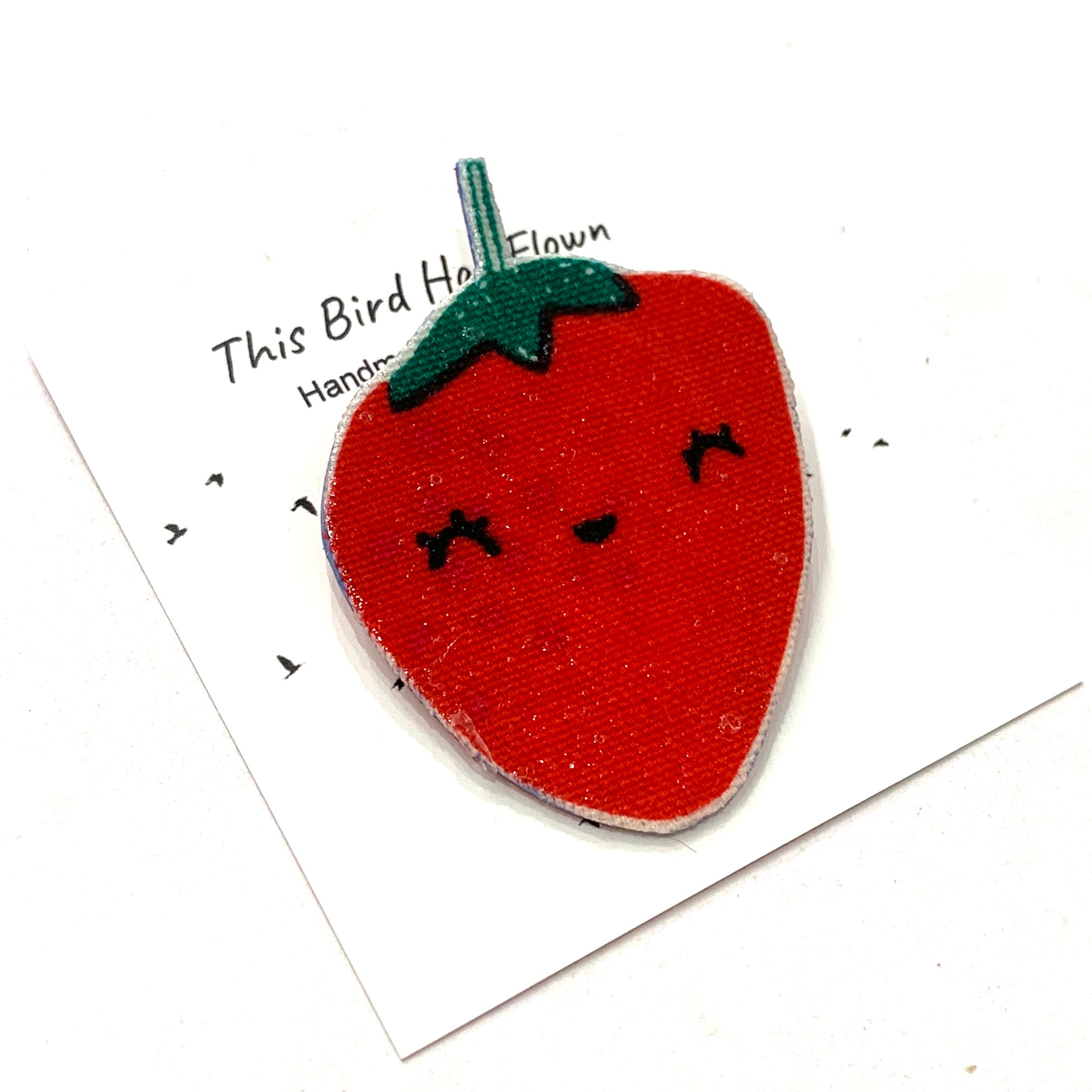 THIS BIRD HAS FLOWN- "Strawberries" Cute Fruits- Fabric Remnant Brooches