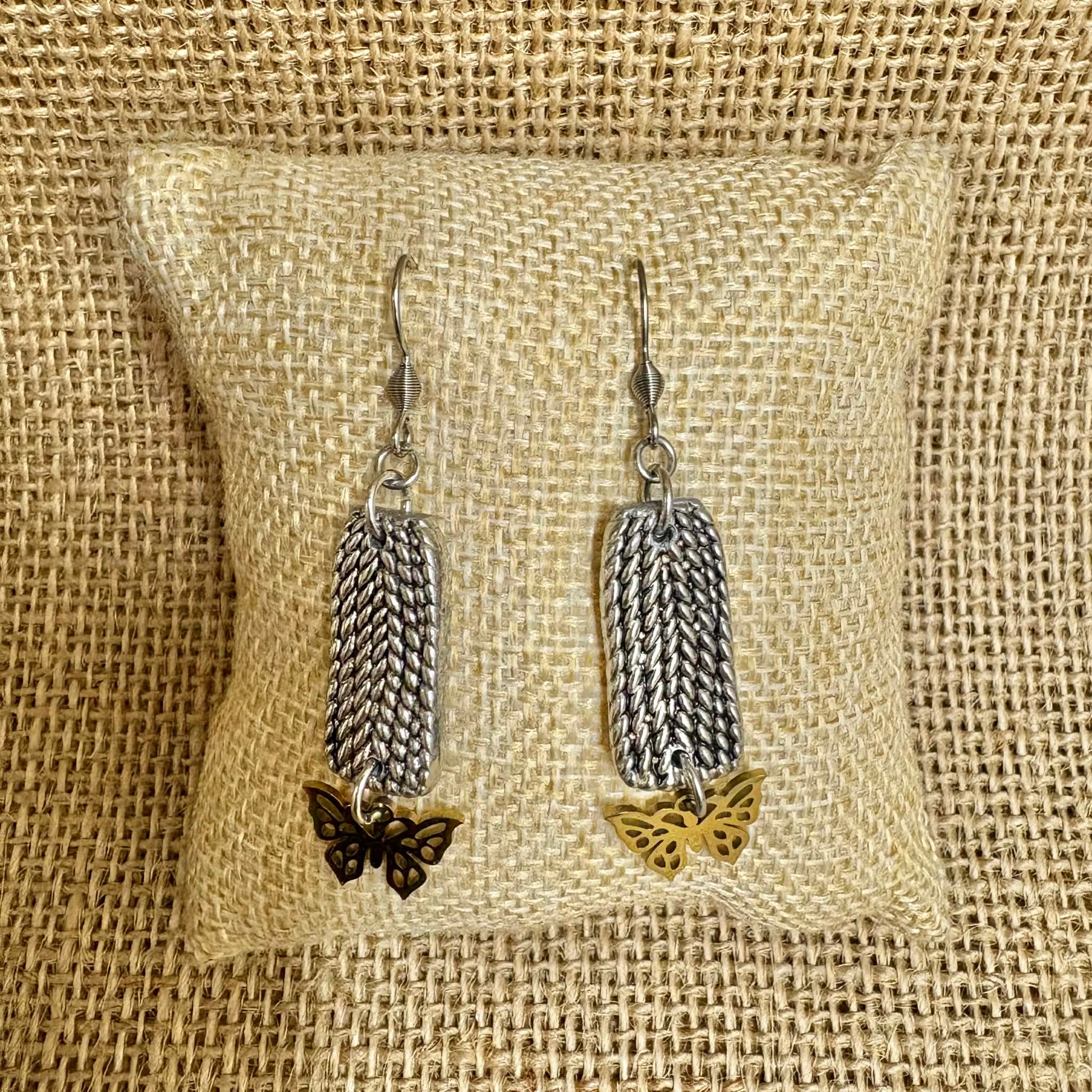 Handmade from vintage teaspoon handles and finished with gold butterfly charms that flutter at the bottom.