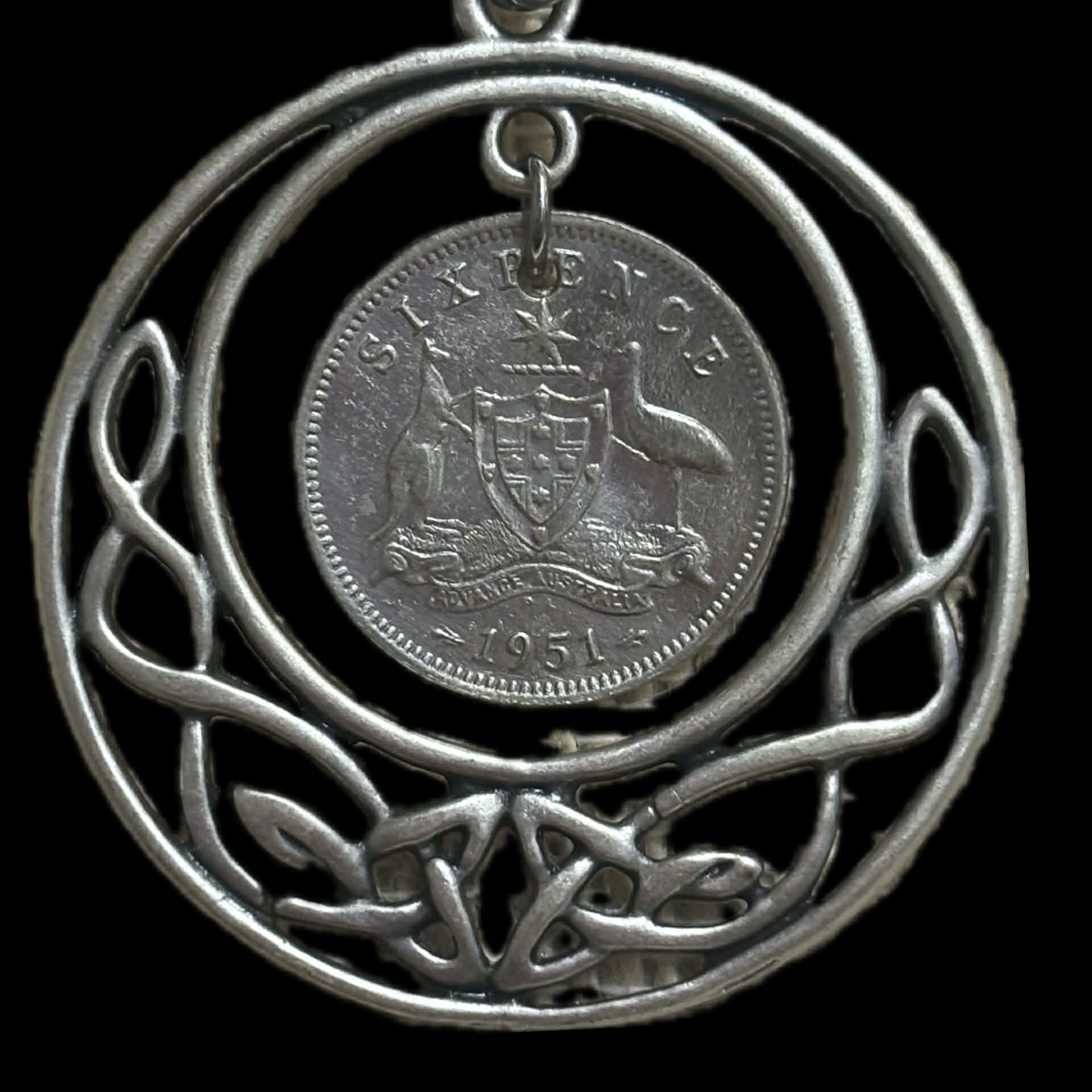 1951 sixpence with a Celtic Alloy decorative surround. Genuine Australian coin 1910-1963. a piece of history made to shine.