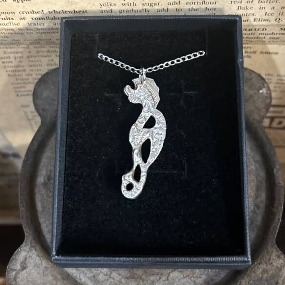 Handmade from the handle of a vintage sugar spoon, this sweet pendant is made for ocean lovers in your life. It is unique and a little quirky, and one of a kind! All on a Lead & Nickel free Stainless Steel Chain.