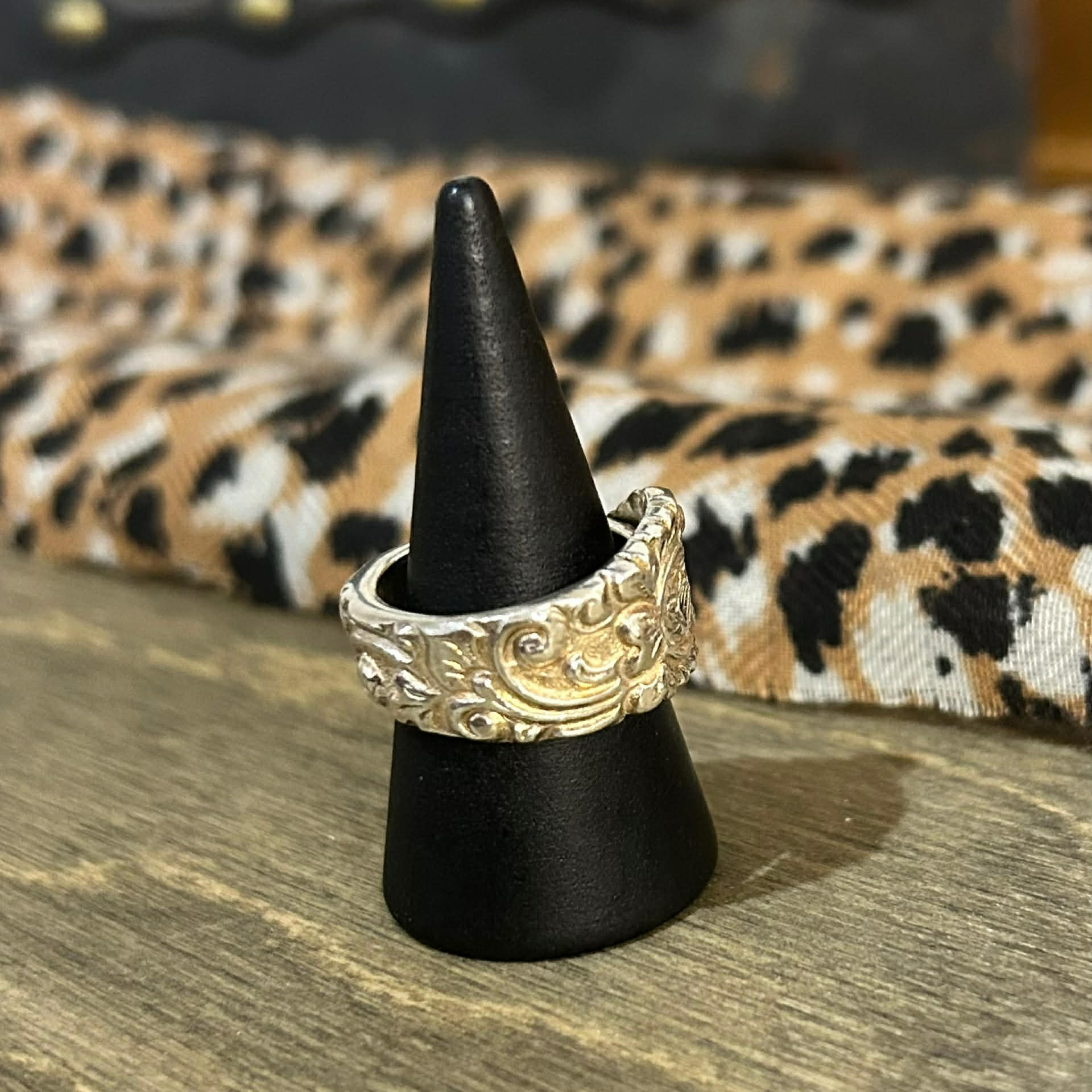 Stunning Detail 1950s Silver Spoon Handle ring. Yogyakarta Heritage of Indonesia.