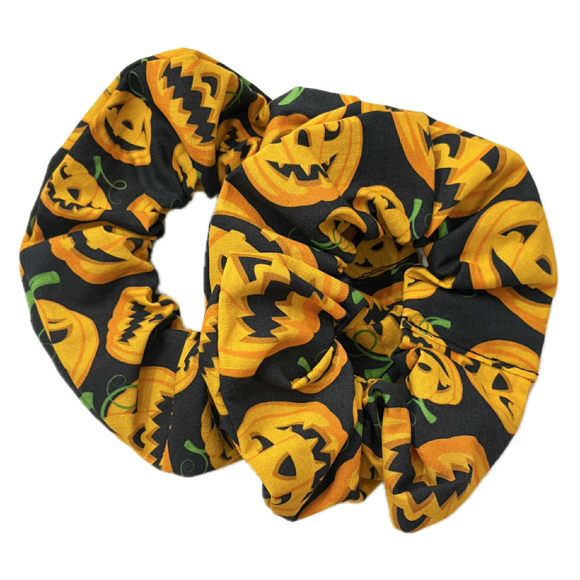 Our Halloween scrunchies are the perfect way to add a spooky twist to your look! Made from a mix of cute and creepy cotton fabrics, featuring everything from jack-o'-lanterns to black cats, each scrunchie brings a festive flair to your hair. A fun accessory for the Halloween season!