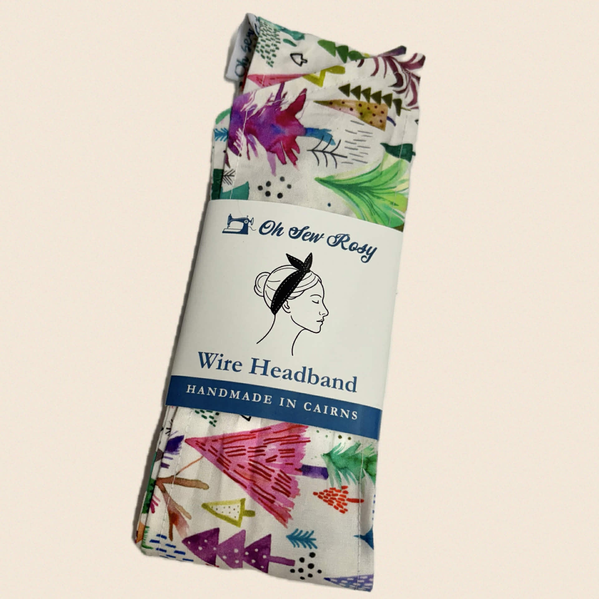 OH SEW ROSY: CHRISTMAS WIRE HEADBAND - Christmas Trees on White