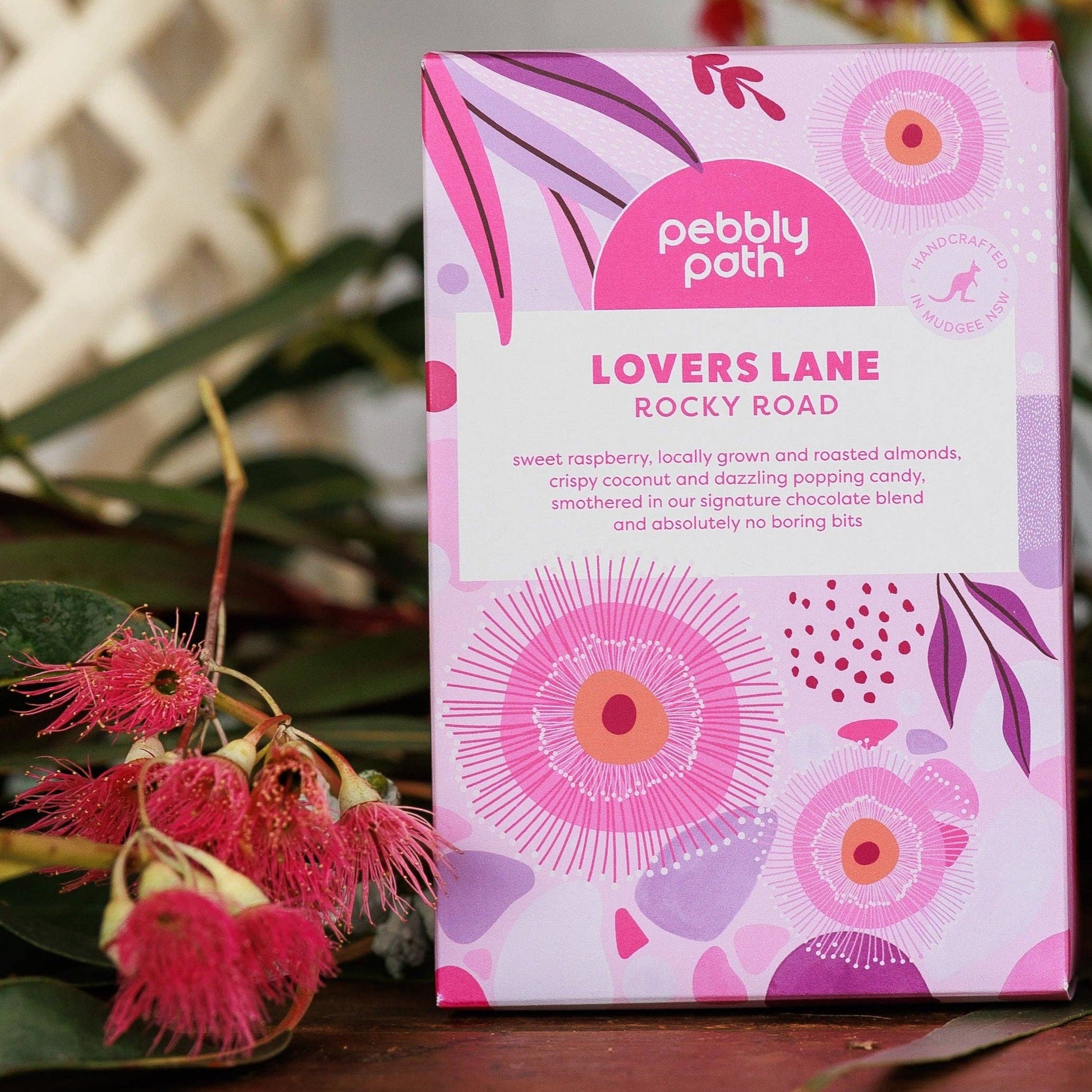 Pebbly Path is extraordinary rocky road made especially for people who hate boring bits. It’s rocky road, but not like you’ve ever had before. Handcrafted in small batches and made in Mudgee NSW, we use locally sourced ingredients, and all our packaging is 100% home compostable and biodegradable.