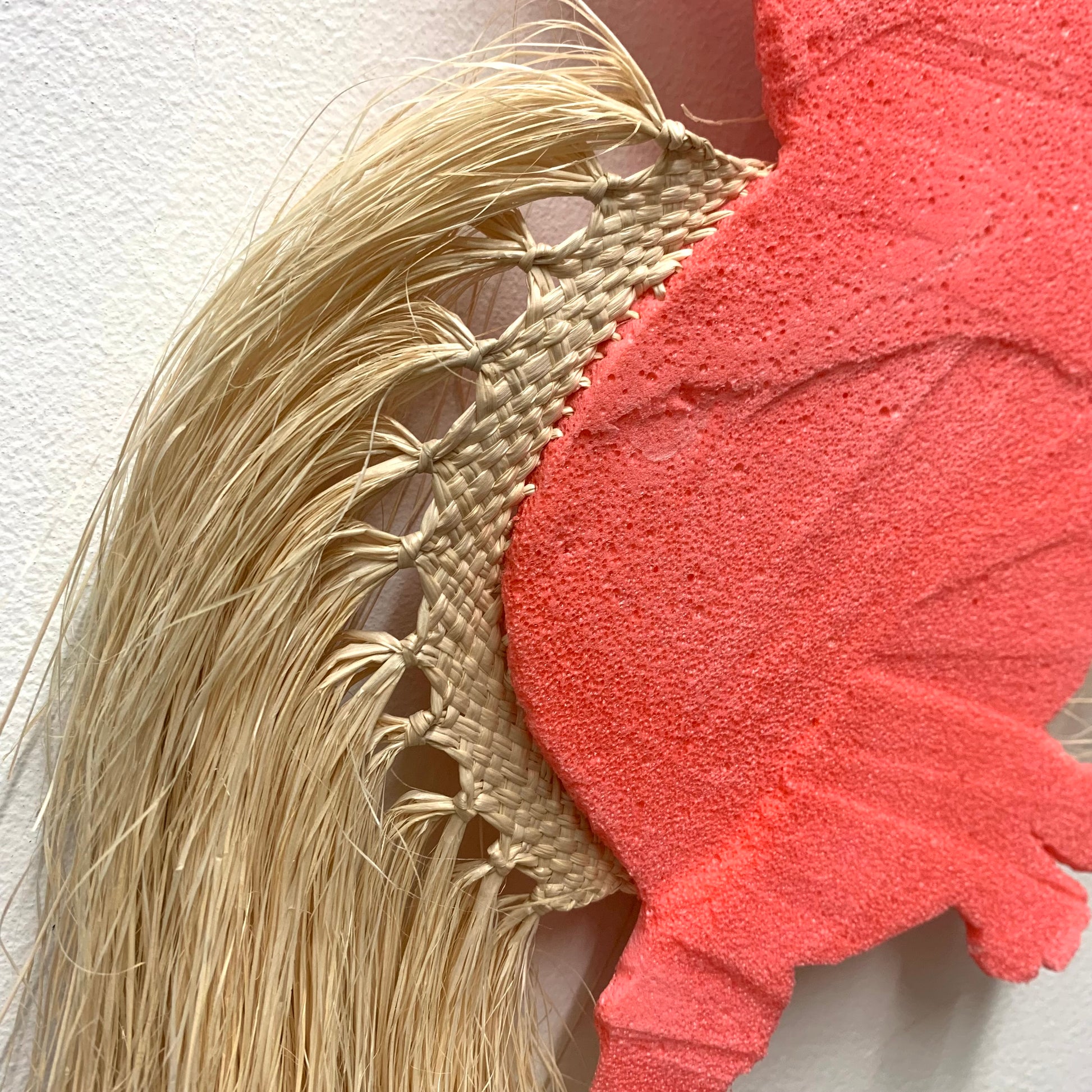 These small wall-mounted rabbits are carved from discarded pink marine floats, collected on and around the artist’s island home.