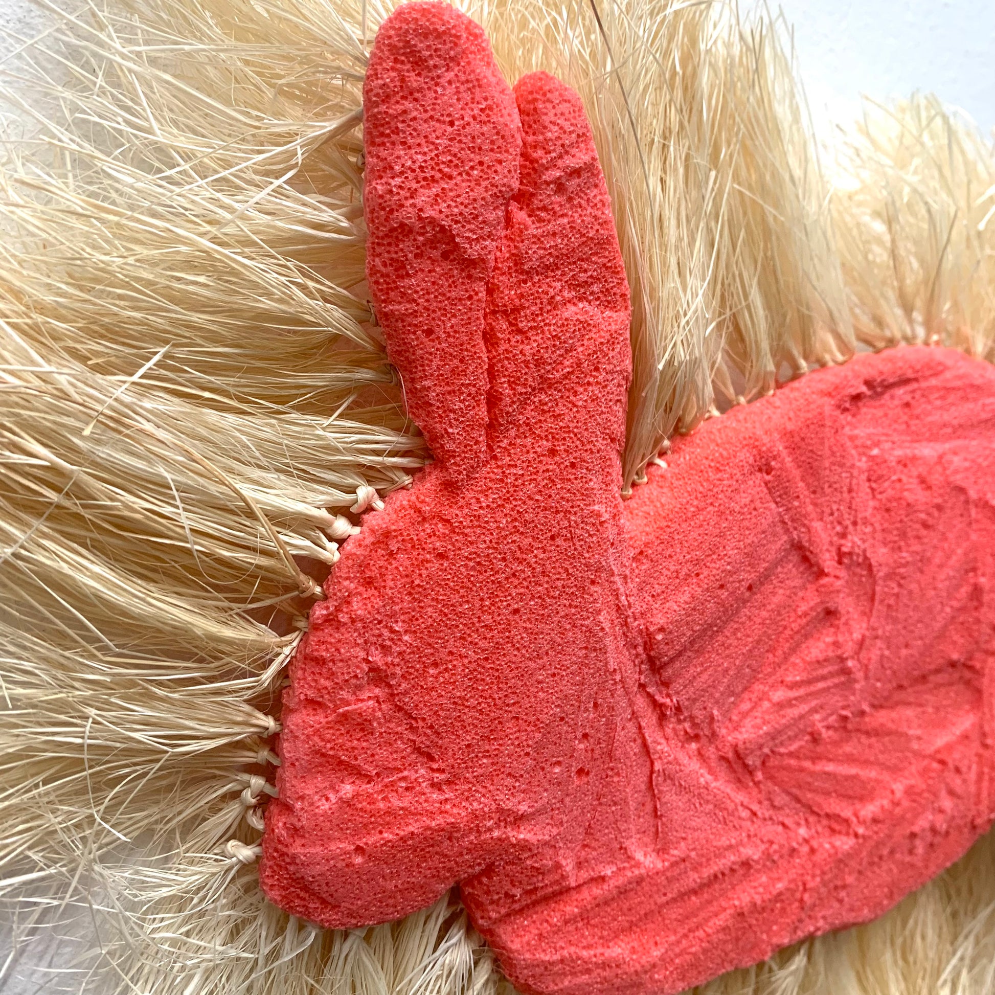 These small wall-mounted rabbits are carved from discarded pink marine floats, collected on and around the artist’s island home.