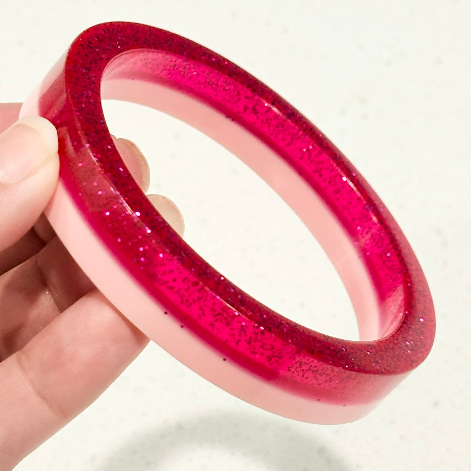 RAY BY DESIGN - Resin Bangle 2 Tone Pink Glitter Round