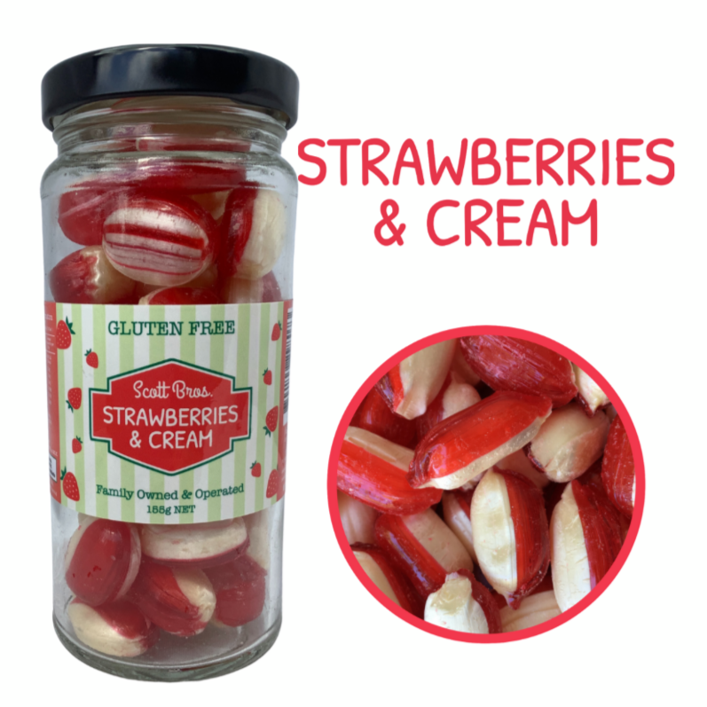 Scott Bros. CANDY® Strawberries & Cream are one of the delightful flavours you know and love.