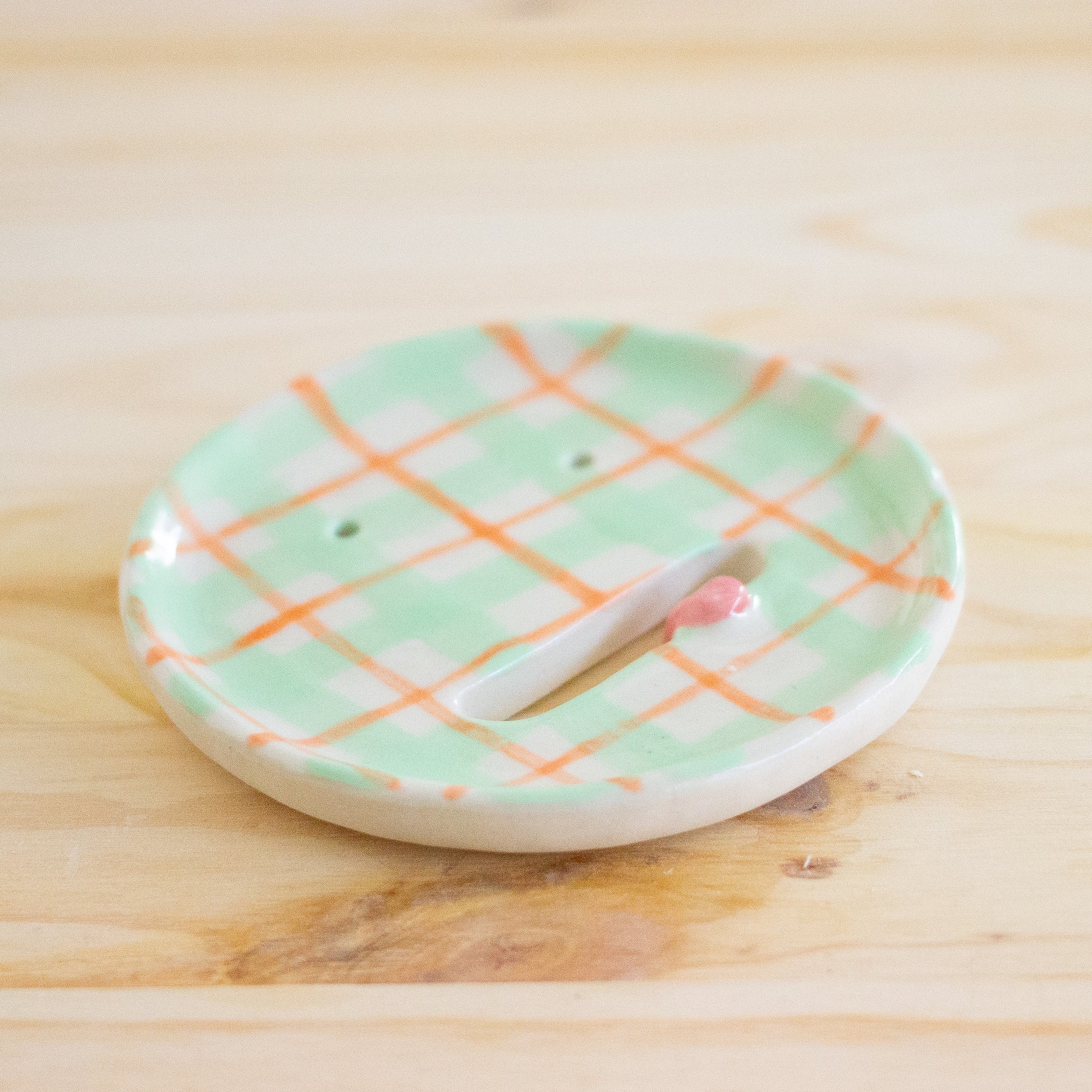 Say hi to Aster! This cheeky ceramic soap dish is here to add a little sass to your sink. With a playful green and orange plaid pattern and a tongue that sticks out (yes, really!), Aster makes even washing your hands feel fun. Perfect for holding your favourite bar of soap and brightening up your bathroom.