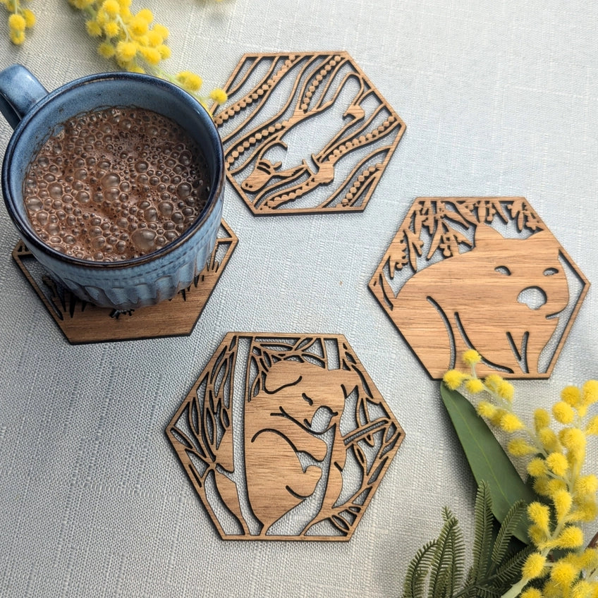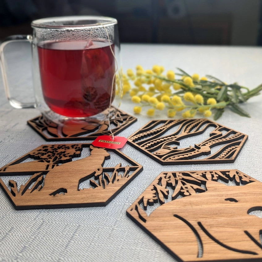 STRAYA ART- Australian Animals - Wooden Coaster Set