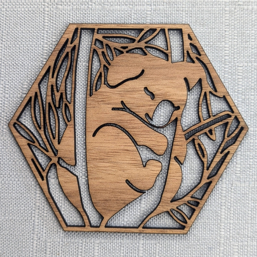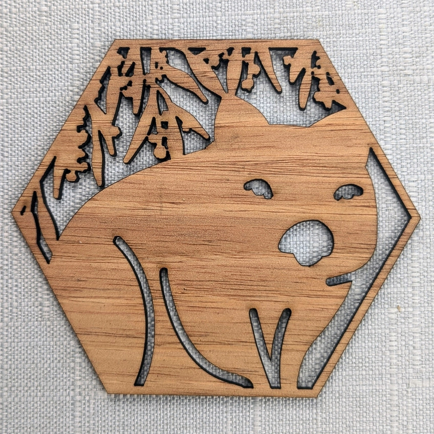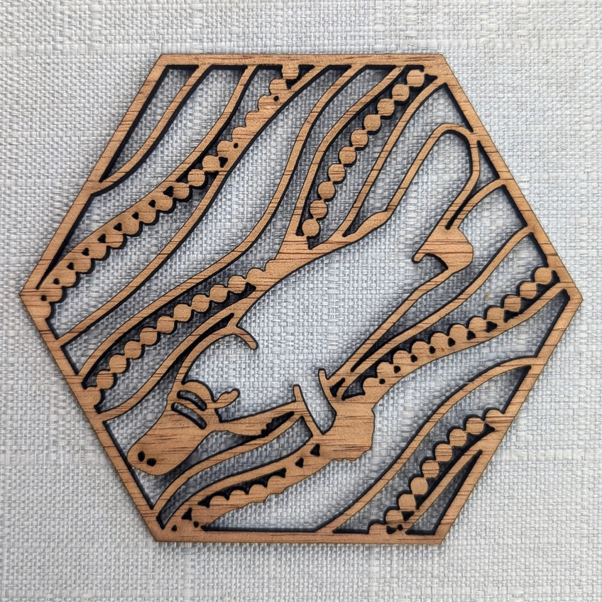 Material: Premium Australian Blackwood Plywood. Protected with clear matte polyurethane. Size: 11.5 x 10 x 0.25 cm. (11.5cm diameter hexagons)