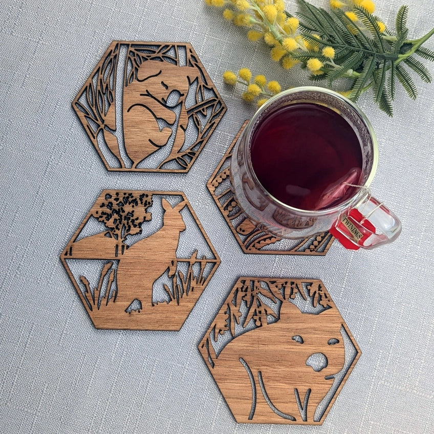 A beautifully designed collection of Australia’s most beloved animals on a set of 4 coasters.