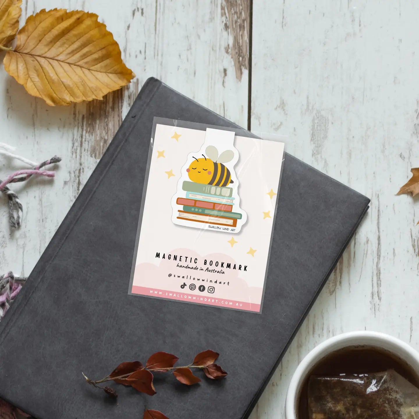 SWALLOW WIND ART - HAPPY BEE WITH BOOKS - MAGNETIC BOOKMARK