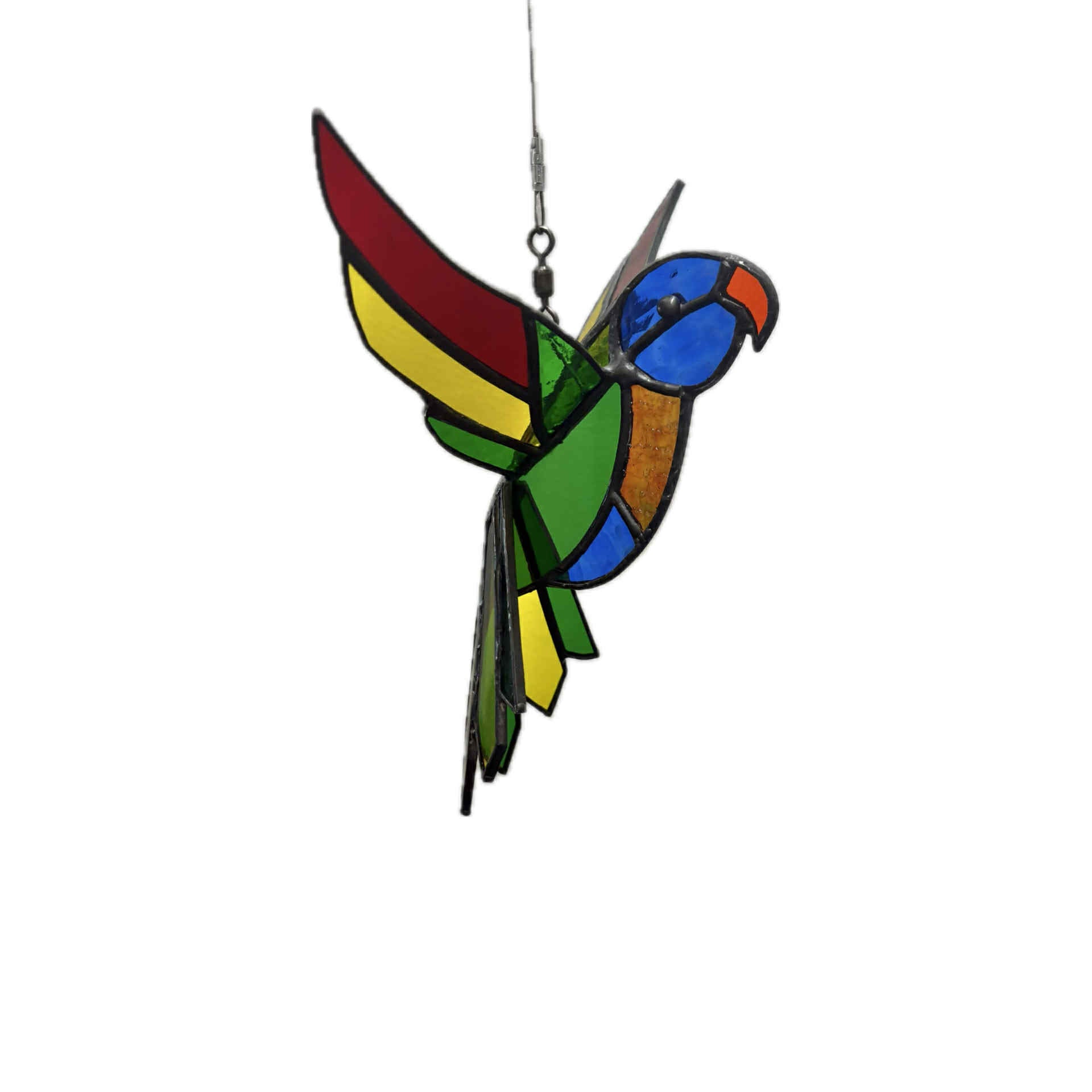 Bring the vibrant beauty of the tropics into your space with this handcrafted 3D Rainbow Lorikeet. Made from colourful stained glass, this striking bird looks stunning catching the light as it hovers mid-flight. A perfect hanging feature for any space that needs a splash of joy and tropical charm.
