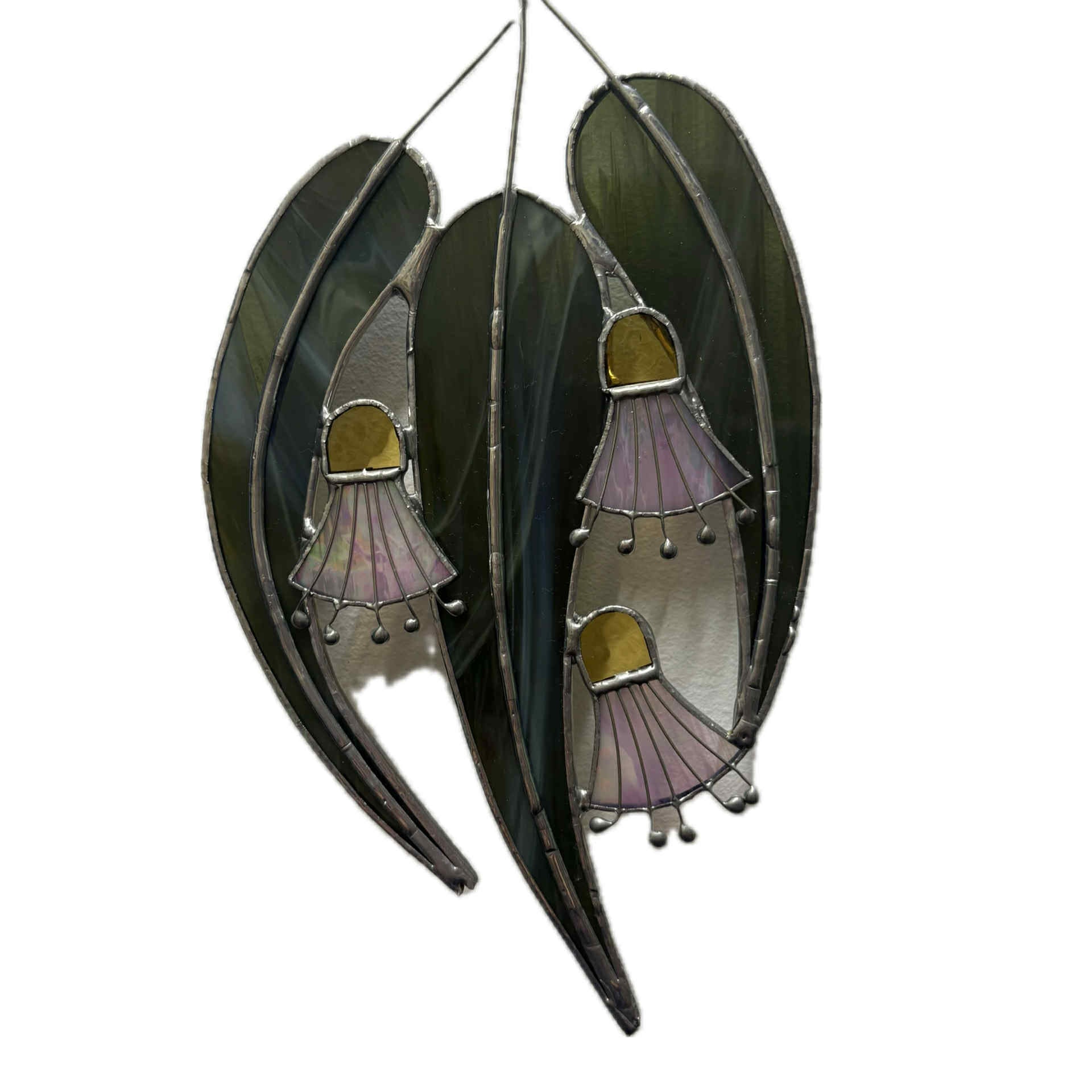 Celebrate Australian flora with these stunning eucalyptus suncatchers. Featuring layered green leaves and delicate hanging gum blossoms, they’re available in soft pink or classic golden tones. Crafted from stained glass with exquisite, soldered detail, these pieces bring the bush indoors with a gentle nod to native beauty.