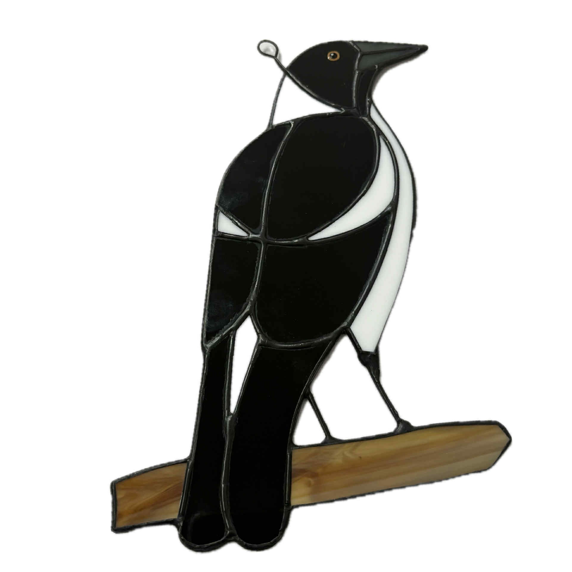 SWAN GLASS - SWOOP THE AUSTRALIAN MAGPIE - Stained Glass Ornament