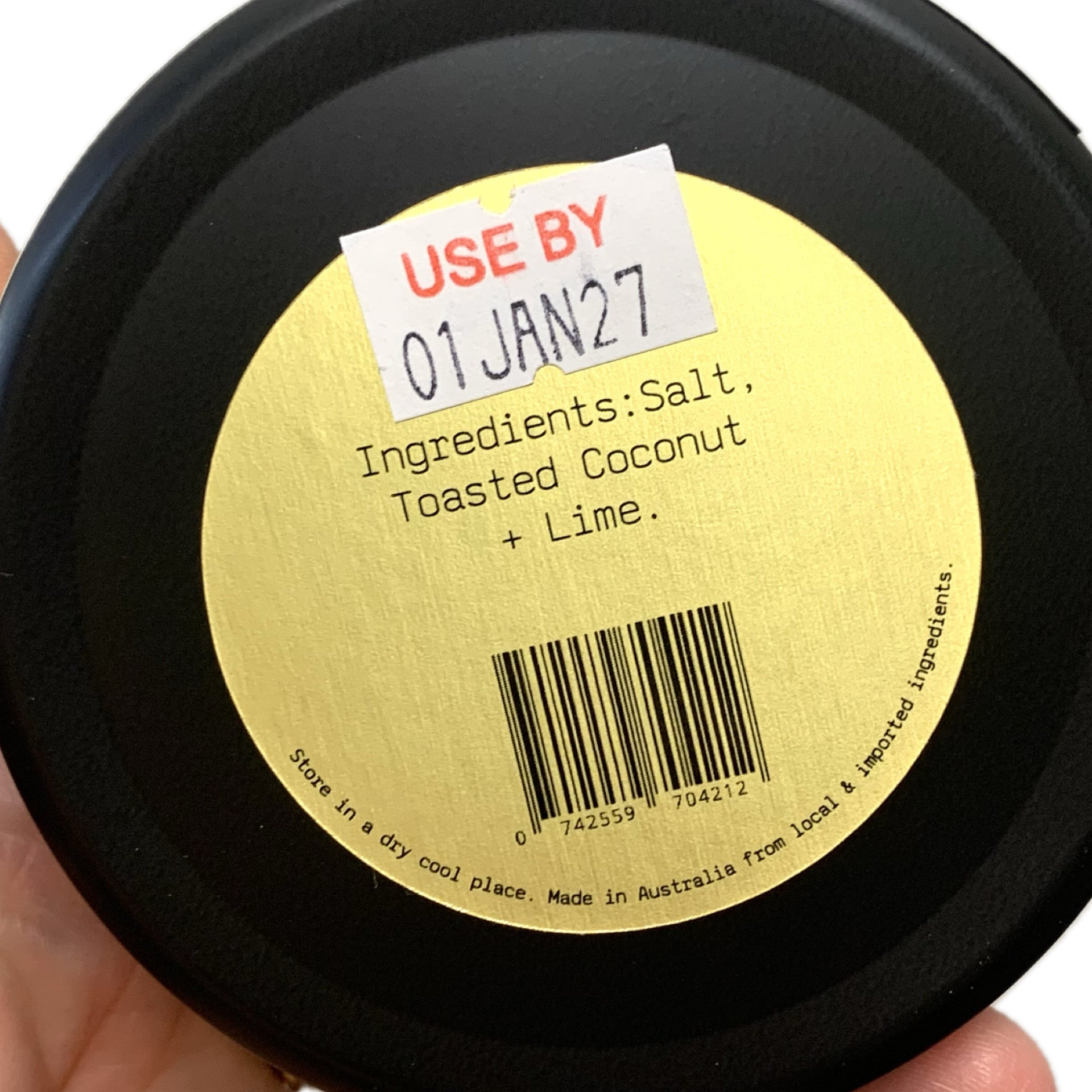 Full of Sea Salt, Dried Australian Lime + Coconut Flakes, this salt is a must have. Not only recommend for cocktails but roasted vegetables & meats as well. Any Thai style marinade & this salt are a match made in heaven.